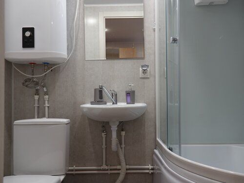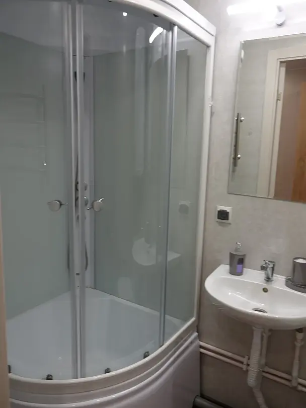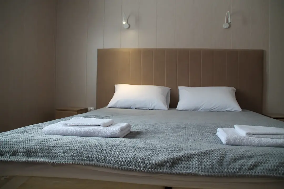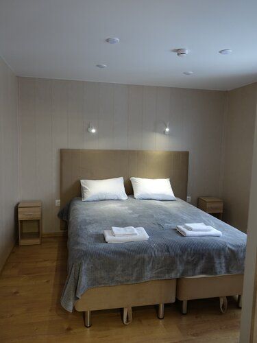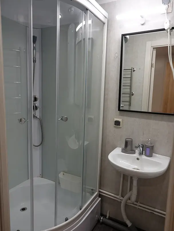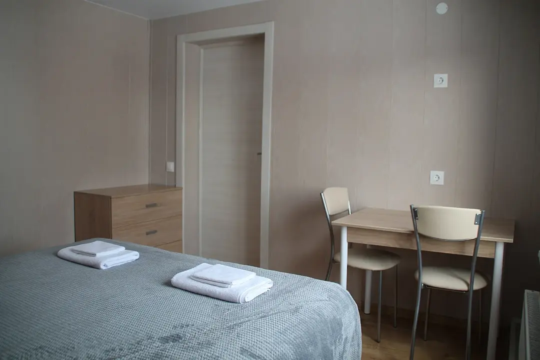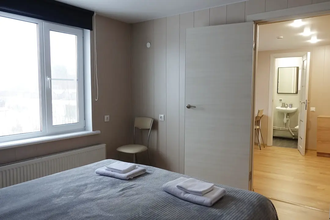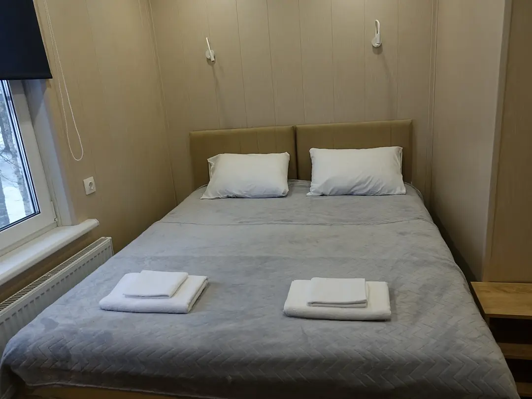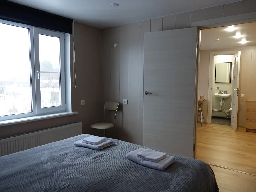 Двухместных номер с большой кроватью. Прихожая, отдельный вход. В номере свой санузел с душевой кабиной. Центральное отопление, бойлер, полотенцесушитель, фен, сейф.