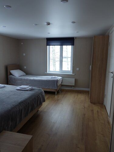 2х-комнатный номер с 1 двуспальной кроватью и односпальной кроватью. Санузел (душ)