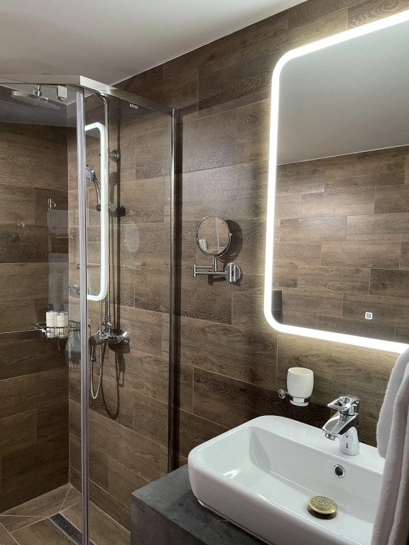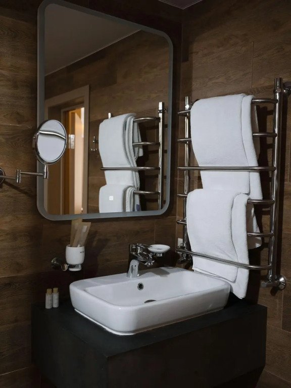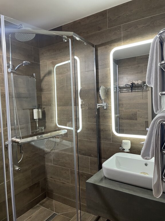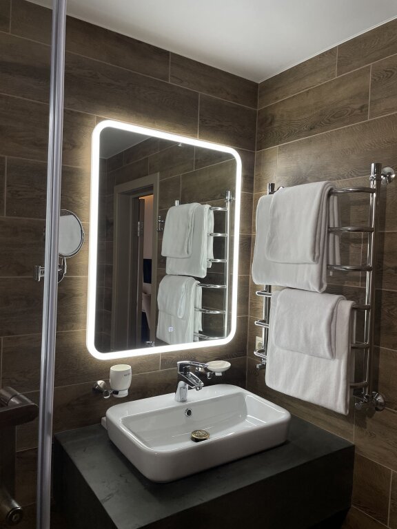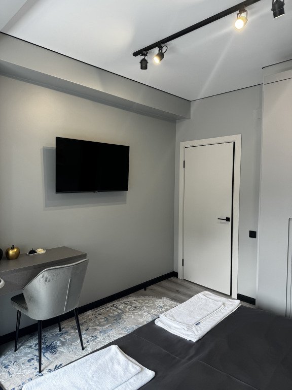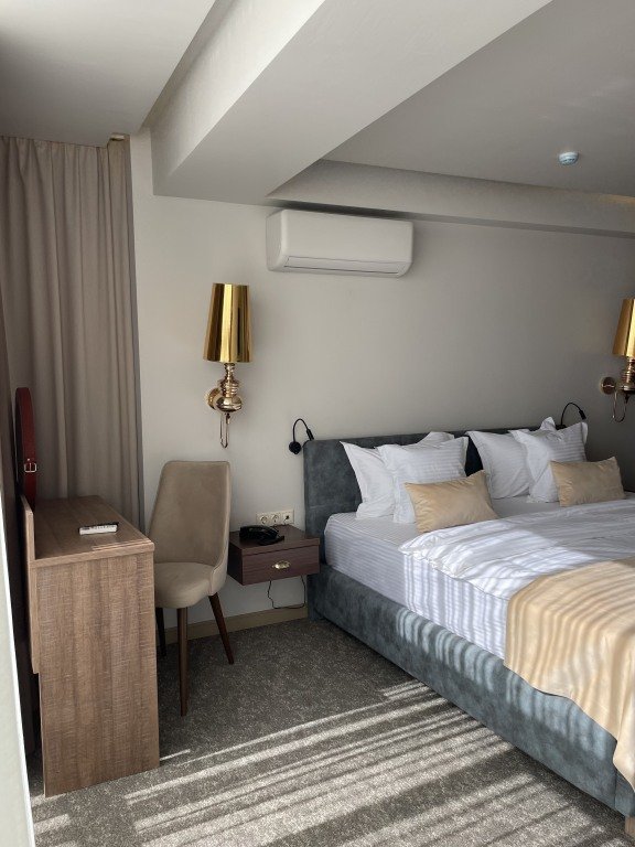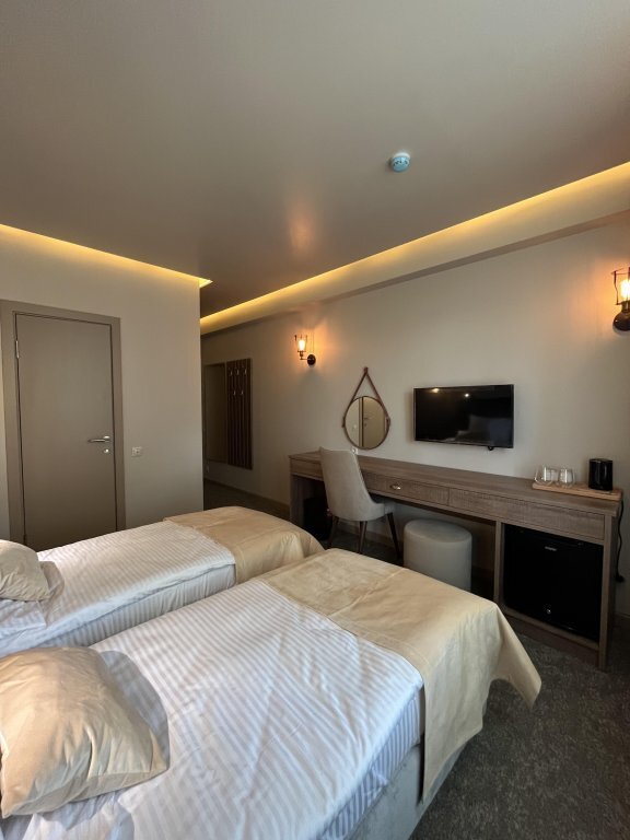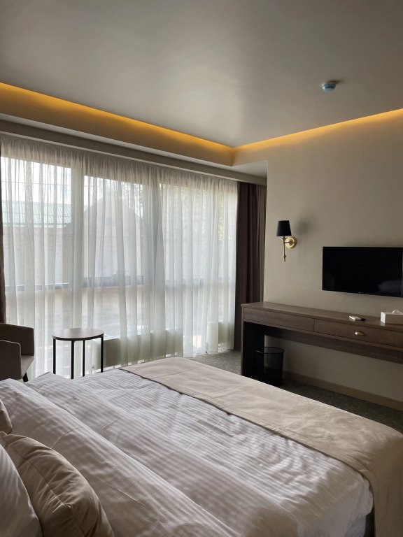 В номере в распоряжении гостей: сейф, телевизор, кондиционер, холодильник, чайная станция, халат и тапочки.