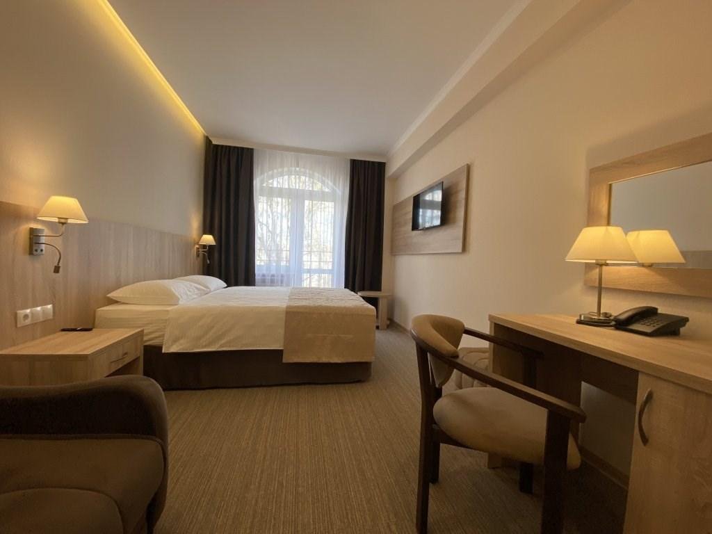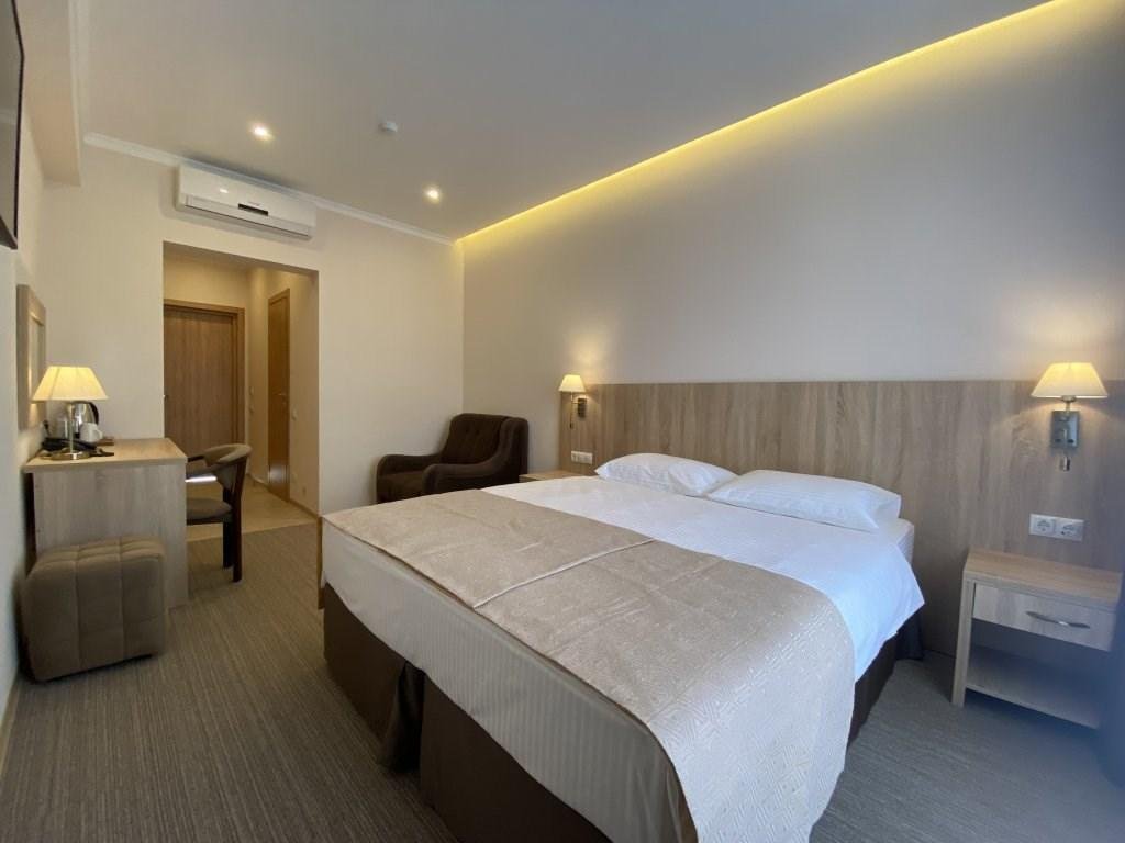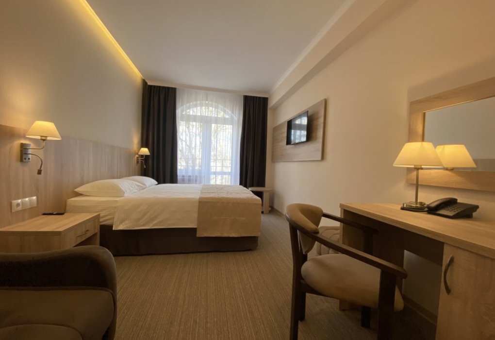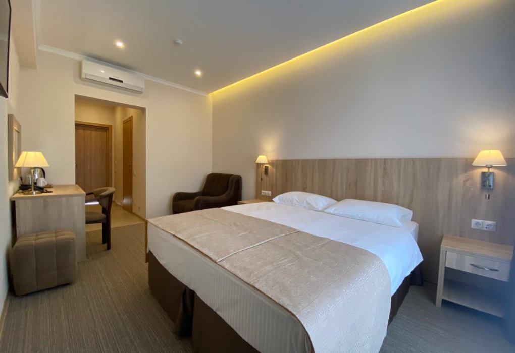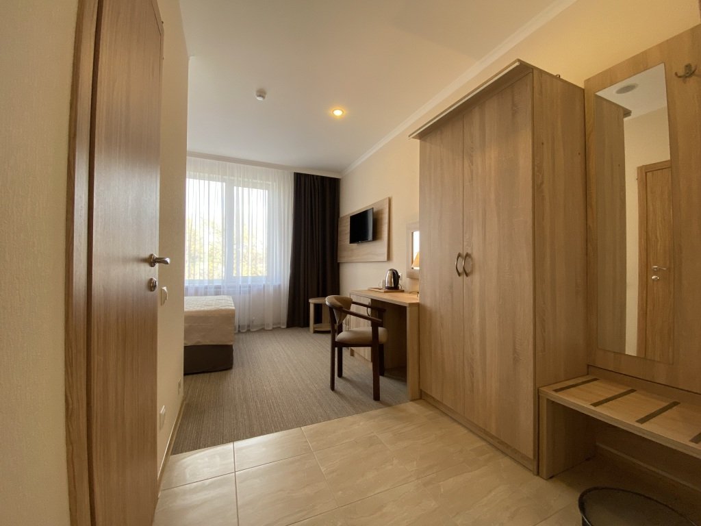 Отель с новым ремонтом, мы жили на 4 этаже. Брали номер с балкончиком. Сантехника хорошая, кровать удобная, в целом номер очень понравился. Обслужаивание тоже. Завтраки на выбор дают 5 или 6 комбинаций. Я (90кг) не то чтобы объедался, но сыт был однозначно. Если утром нужно ехать до завтрака, то вечером на ресепшене можно взять сухпай (бутерброд, вода и булочка вроде).