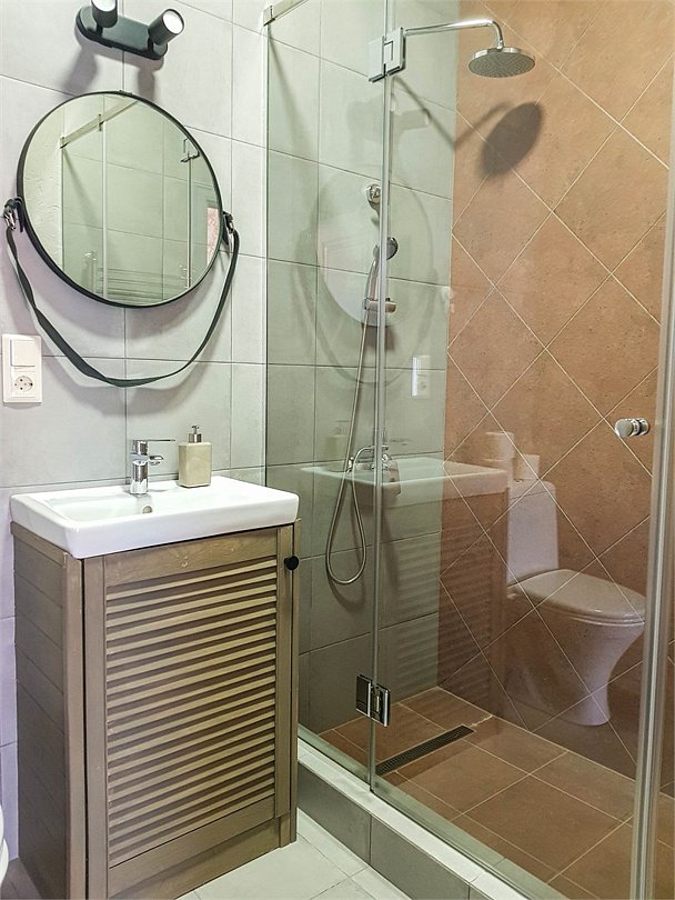 Wi-Fi, интернет, холодильник, кондиционер, фен, система безопасности, микроволновая печь, утюг, обогреватель, душевая кабина, банные полотенца, полутораспальная кровать, гладильная доска, ортопедический матрас, вешалки, журнальный столик, багажная тумба, барная стойка, зеркало, чайный набор, стиральная машина, чайник, отопление, душ, плиточное покрытие, раздельный санузел, вид во двор, кухонная посуда, стаканы, туалетные средства, цифровое тв, телевизор с плоским экраном, вид на горы, телевизор со Smart TV, номер для некурящих, набор для приготовления чая и кофе, вешалки-плечики, можно с питомцамиВ номере