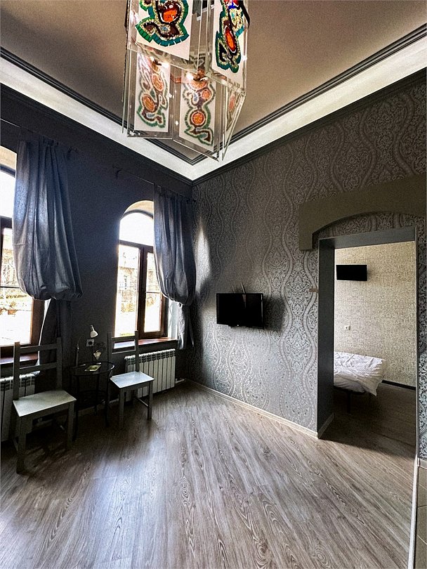 два телевизора, Wi-Fi, интернет, холодильник, кондиционер, светильник, фен, система безопасности, плита для приготовления пищи, микроволновая печь, утюг, обогреватель, ванная комната, душевая кабина, ванна или душевая кабина, санузел, банные полотенца, двуспальная кровать, гладильная доска, диван, вешалки, журнальный столик, обеденный стол, багажная тумба, зеркало, две комнаты, кухня, чайный набор, набор посуды, стиральная машина, чайник, раковина, отдельный вход в номер, вид на город, плиточное покрытие, кресло, раздельный санузел, вид во двор, высокие потолки, кухонная посуда, стаканы, кухонная утварь, столовые приборы, кофейный столик, стул, туалетные средства, сушилка для белья, цифровое тв, диван-кровать, телевизор с плоским экраном, телевизор со Smart TV, номер для некурящих, набор для приготовления чая и кофе, можно с питомцамиВ апартаментах