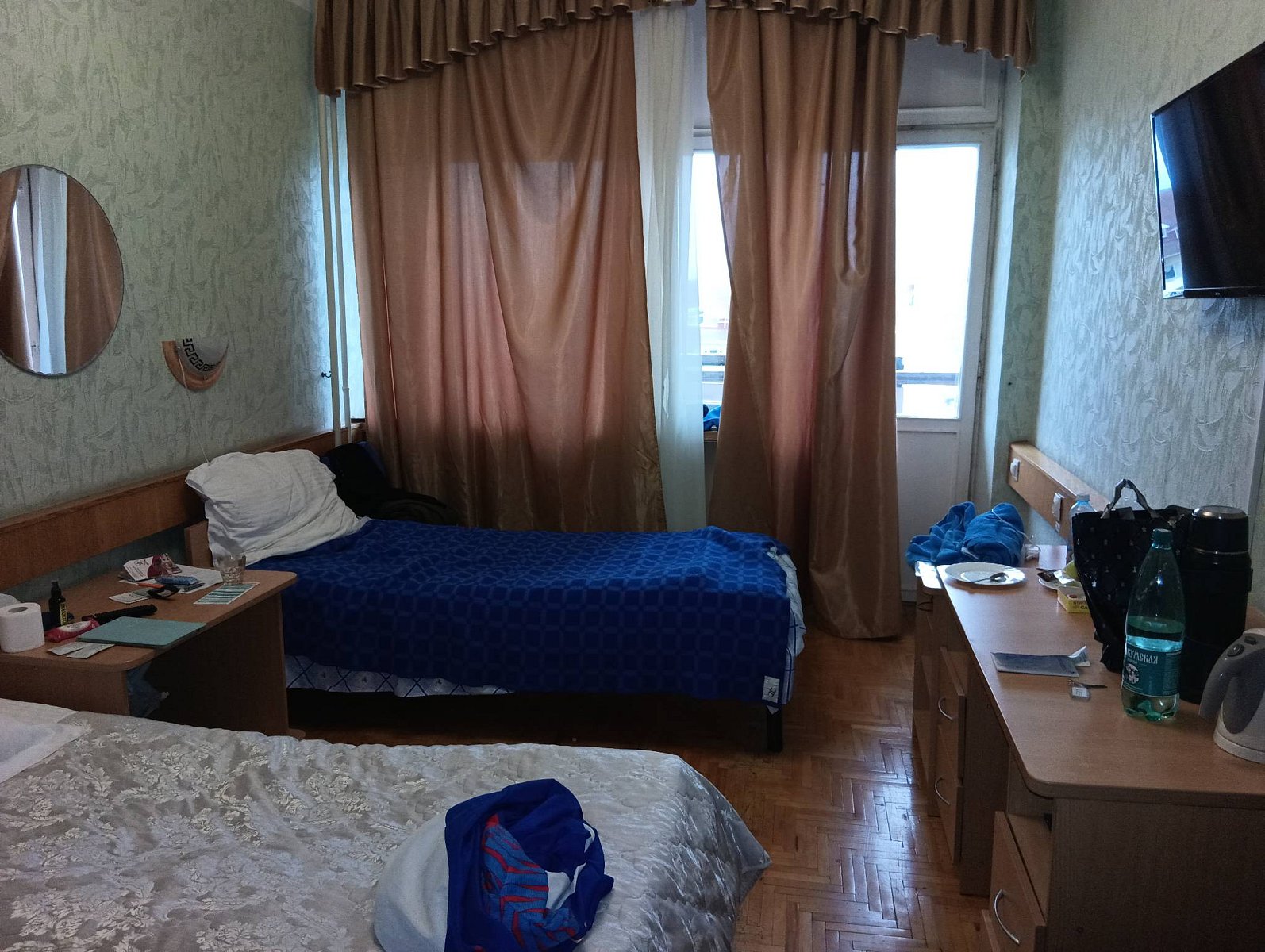 1. Старый номерной фонд. Ну уж очень старый. Мебель, пол скрипят, окна в номерах деревянные, балкон закрывается плохо, сантехника вся старая, ржавая. На фото это прекрасно видно.