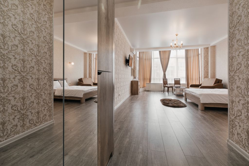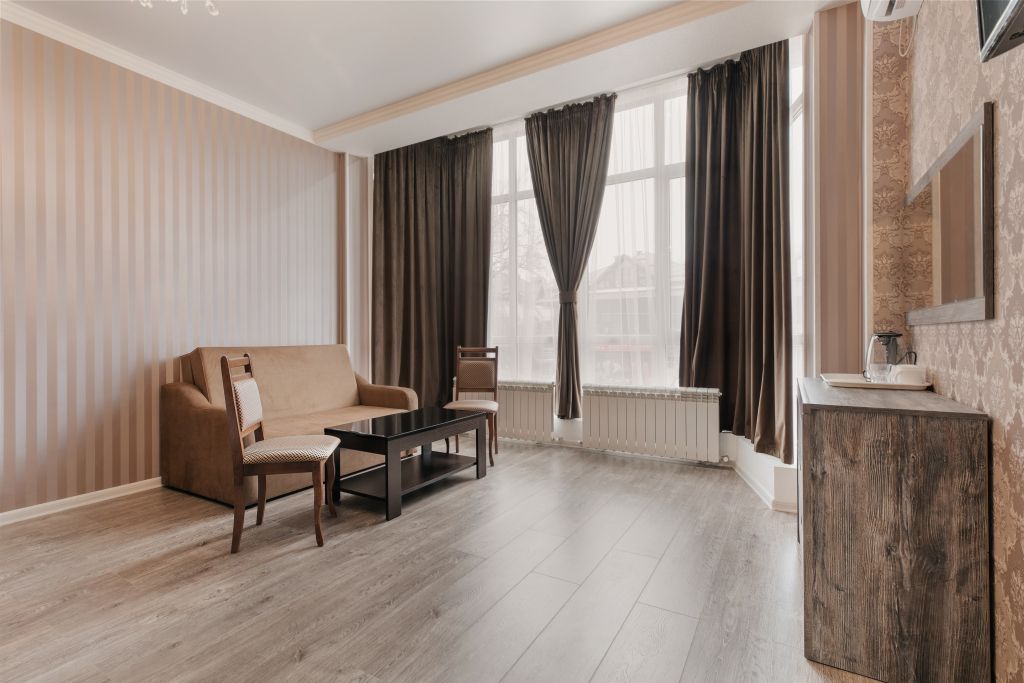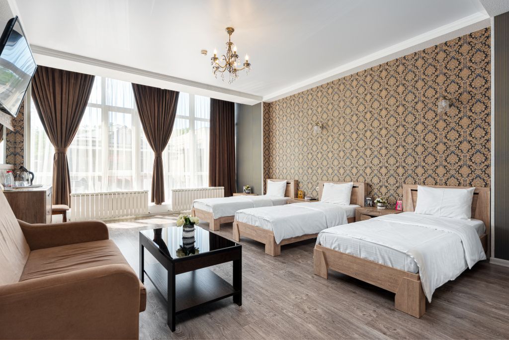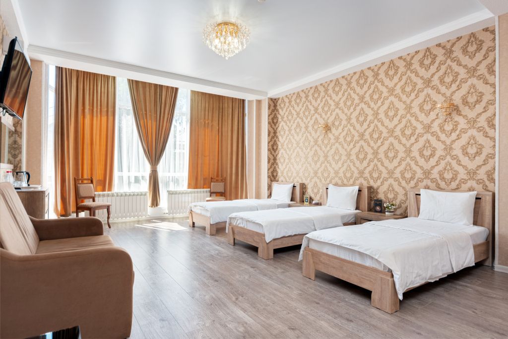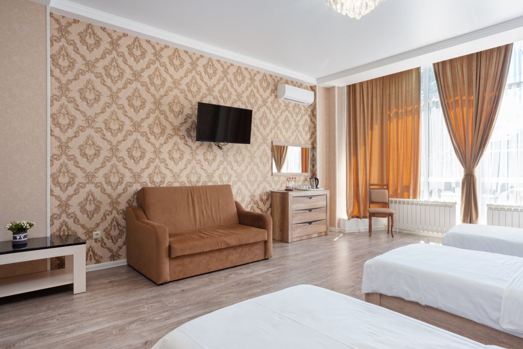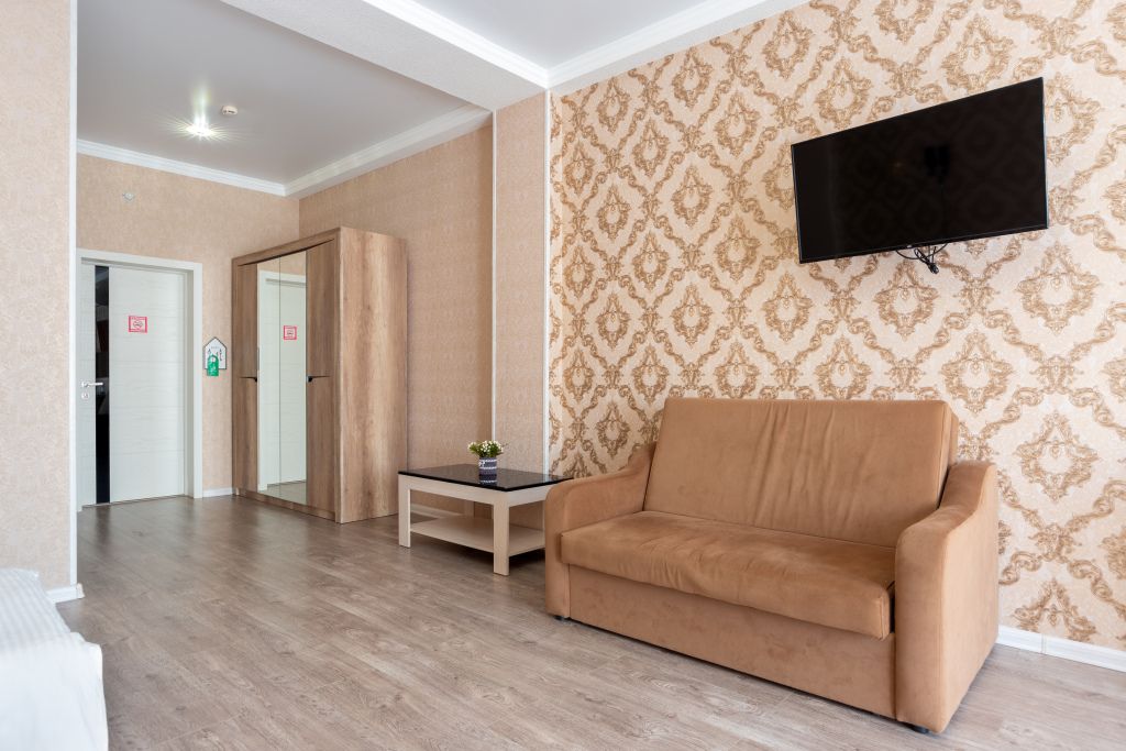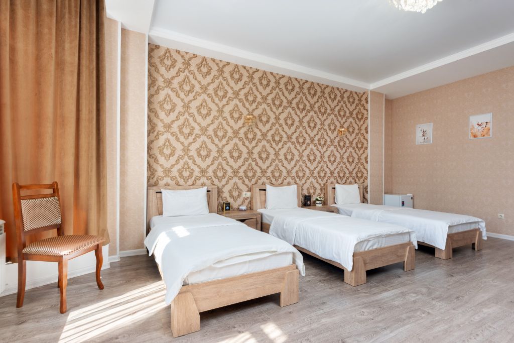 Отдыхающие смогут разместиться с комфортом в различных категориях номеров. В отеле 17 просторных и комфортабельных номеров, которые гарантируют незабываемый отдых. Комнаты оформлены в светлых бежевых оттенках и комплектованы всем самым необходимым: кондиционером, ЖК-телевизором, полотенцами и средствами личной гигиены.
