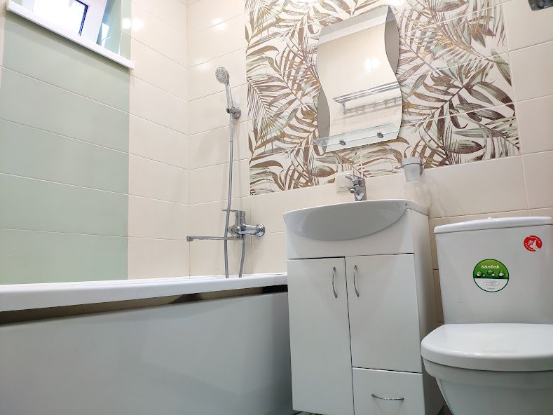 В доме есть абсолютно всё для комфортного проживания: 2 изолированные комнаты с двуспальными кроватями и ортопедическими матрасами, кухня, оборудованная бытовой техникой и набором посуды, 2 санузла и стиральная машина, телевизор и Wi-Fi.
