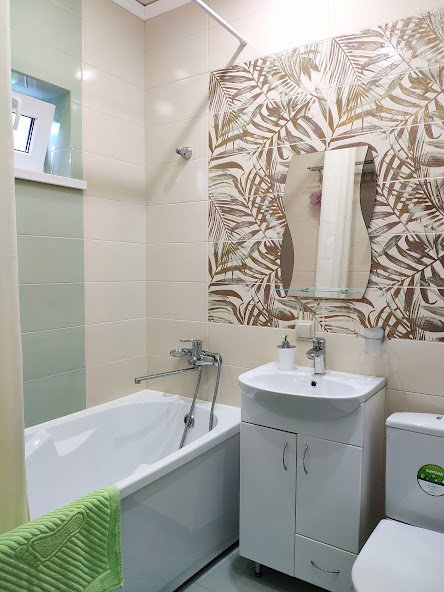 Есть абсолютно всё для комфортного проживания: стиральная машина, посудомоечная, чайник и холодильник, постельное и полотенца.
