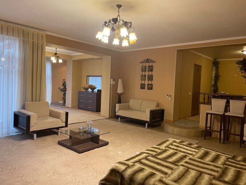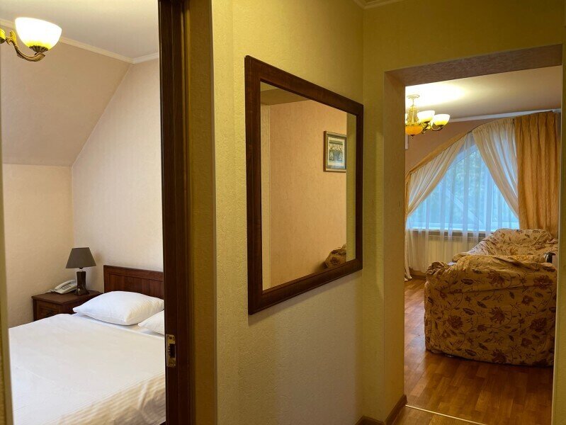 2 отдельные комнаты, спальня с двуспальной кроватью и гостиная с мягкой мебелью.
