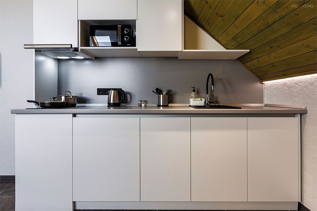 Cовременный дизайн этого апартамента, комфортного для проживания вдвоем, никого не оставит равнодушным.