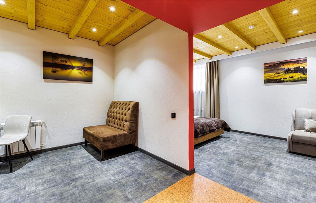 Самый просторный апартамент нашего гостевого дома отлично подходит для проживания с семьей.
