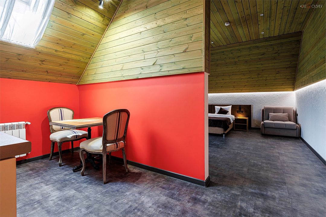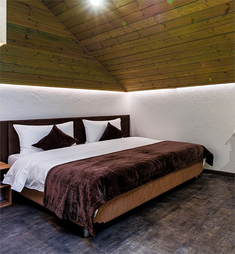 Дизайн с иголочки!Продуманы все мелочи , отделка деревом ,форма потолков,уютно романтично!