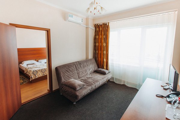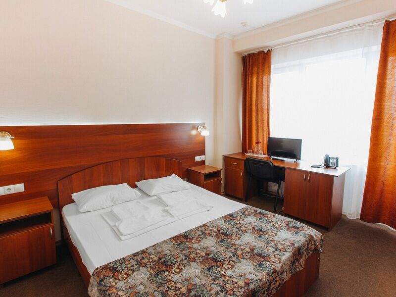 Девятиэтажное здание, оснащенное лифтом, возвышается на закрытой территории недалеко от пересечения улиц академика Павлова и Карла Маркса. Отель предлагает отдыхающим небольшие номера категории Эконом и Стандарт и вместительные номера Комфорт и Семейные. Независимо от степени комфорта везде есть санузел с душем, телевизор, холодильник и фен. В номерах Люкс есть кондиционеры и балконы, откуда открываются живописные виды на Эльбрус и Кавказский хребет.