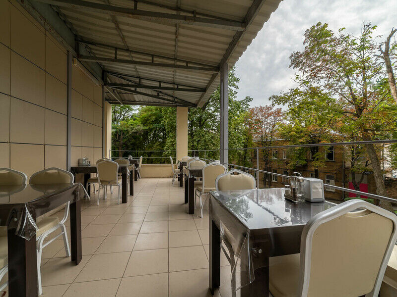 В теплое время года особенно приятно расположиться на открытой веранде. Здесь любой гость может с особым удовольствием выпить чашечку кофе или чая, вкусно пообедать с коллегами или провести семейный ужин.