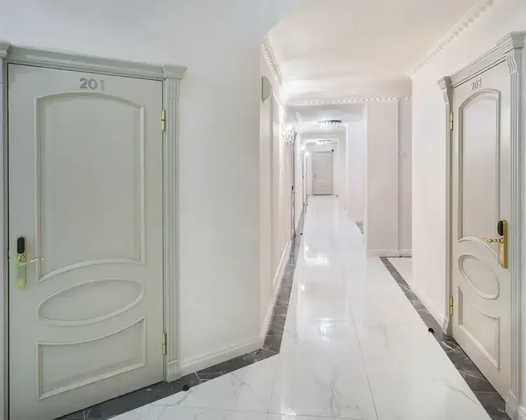 Отель предлагает комфортное размещение и проживание двух человек в однокомнатных двухместных номерах Полулюкс, расположенных на 2-м этаже отеля.