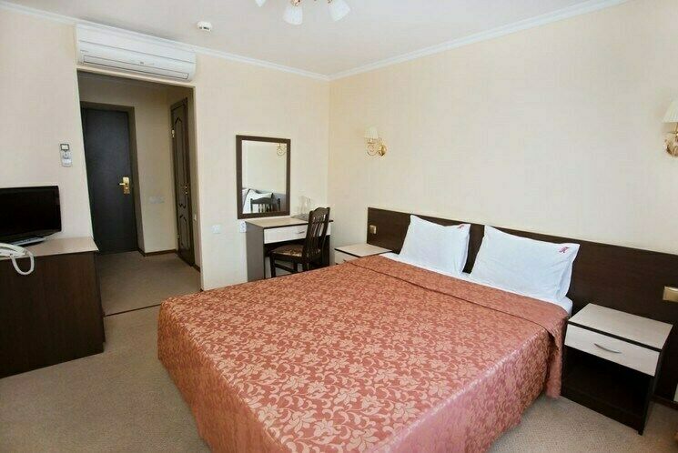 Минус: жила в одноместном номере, кровать 90 см в ширину мне была маловата, но кому-то нормально.