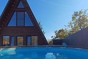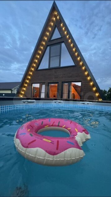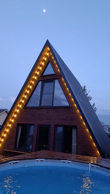 Двухэтажный треугольный дом (А-фрейм) с мансардой с потрясающим видом на Бештау и подогреваемым круглогодичным бассейном.