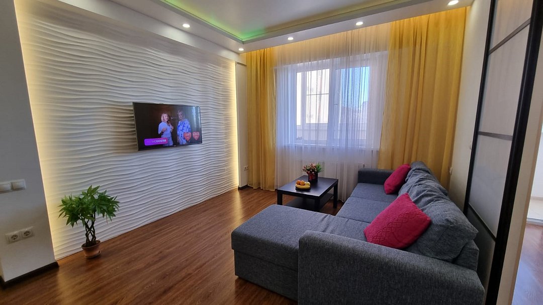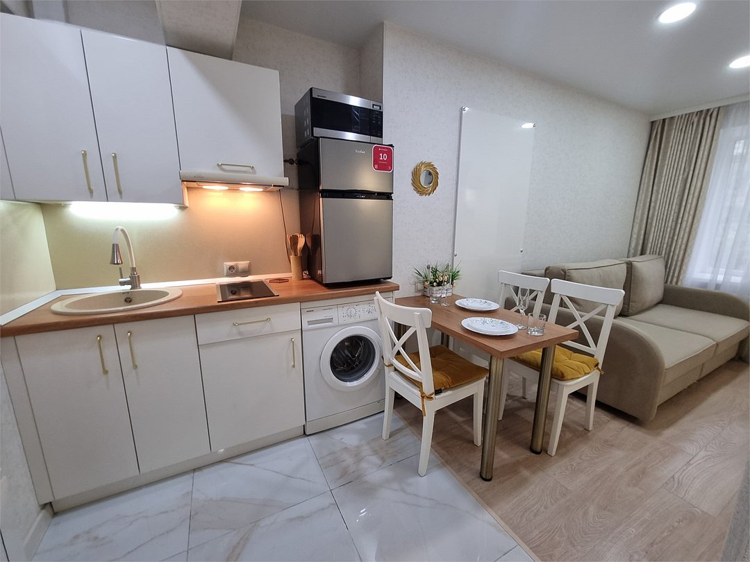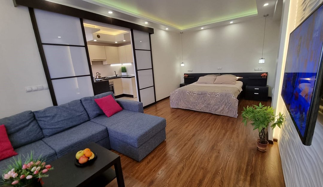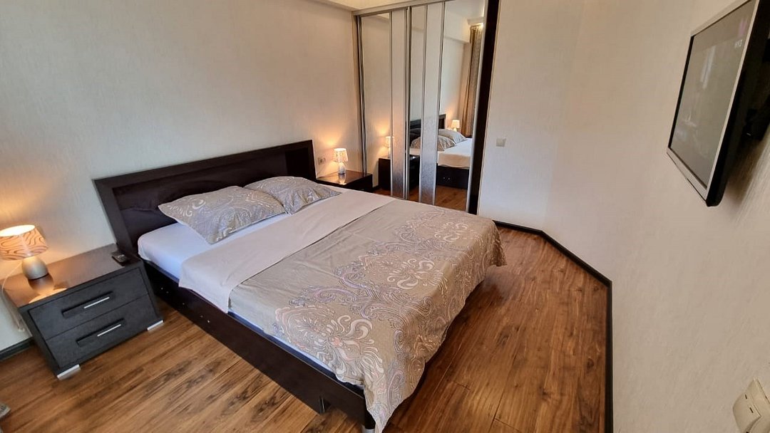 телевизор, Wi-Fi, интернет, холодильник, кондиционер, светильник, фен, микроволновая печь, утюг, теплый пол, банные полотенца, двуспальная кровать, гладильная доска, диван, шкаф для одежды, гардеробная, вешалки, обеденный стол, зеркало, кухня, набор посуды, унитаз, отопление, отдельный вход в номер, душ, кухонная посуда, стул, тумба, туалет, сушилка для белья, раскладной диван, мини-кухня, кухонный уголок, москитная сетка, шкаф-купе, теплые полы, морозильная камера, двуспальный раскладной диван-кровать, вешалки-плечики, частный двор, можно с питомцами, тропический душ, уличная мебельВ апартаментах