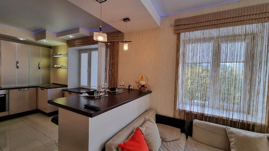 Квартира-студия располагается в самом центре мик-на Б.Ромашка, Лермонтовский разъезд, ул. Московская. (недалеко от Макдональдса) В шаговой доступности оставновка общественного транспорта. Идеальное место для спокойного проживания и прогулок по городу. Шикарная квартира с дайнерским евроремонтом, мебелью и всей необходимой бытовой техникой,в новом доме. Двухуровневые потолки с подсветкой, встроенная кухня, Вся мебель новая. Спальные места: большая двуспальная кровать,и раскладной двуспальный диван. К Вашим услугам безлимитный интернет WI FI, СВЧ, Варочная панель, Холодильник, Стиральная машина-автомат, Сушка для белья, Фен, Утюг и т.дУслуги и удобства