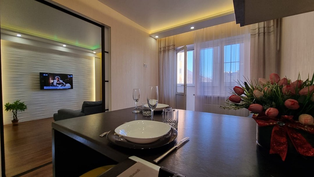 Квартира (евро-двушка(спальня отдельно, кухня соединена с залом) расположена у подножья горы машук с прекрасным видом на гору. Шаговая доступность к парковой зоне и центральному рынку. Близко к курортной зоне В новом доме, консьерж, парковка на территории дома, закрытая территория, тихое зелёное место. Беспроводной интернет (wi-fi). Парковочное местоУслуги и удобства