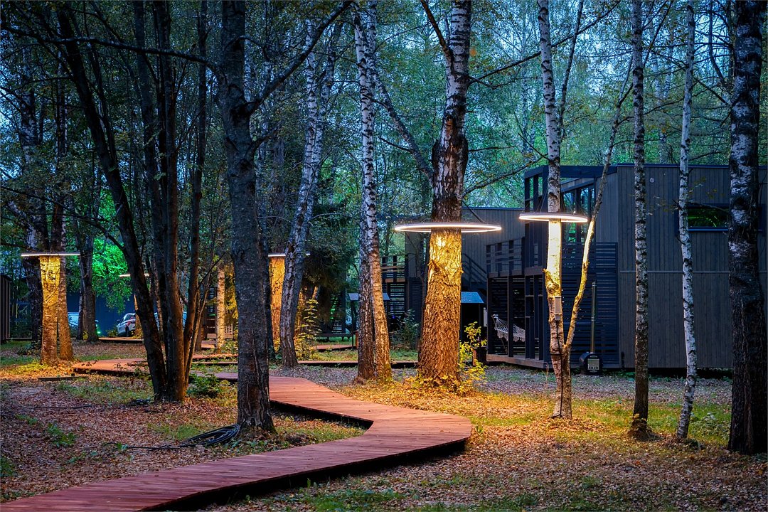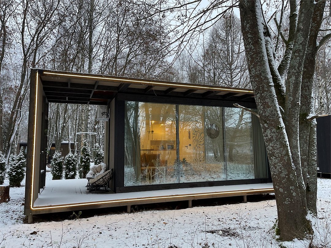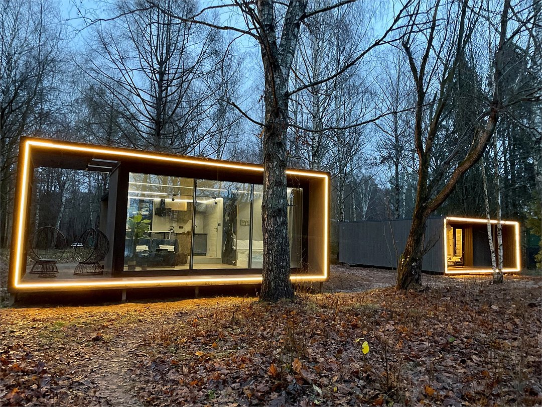 Wi-Fi, кондиционер, фен, микроволновая печь, душевая кабина, косметические средства, терраса, кровать «Queen size», две односпальные кровати, кухня, посудомоечная машина, кухонная посуда, мангал, панорамные окна, мини-холодильник, вид на озеро, вид на лес, общественный бассейн, система умный дом, проектор, умная колонка, можно с питомцамиВ коттедже