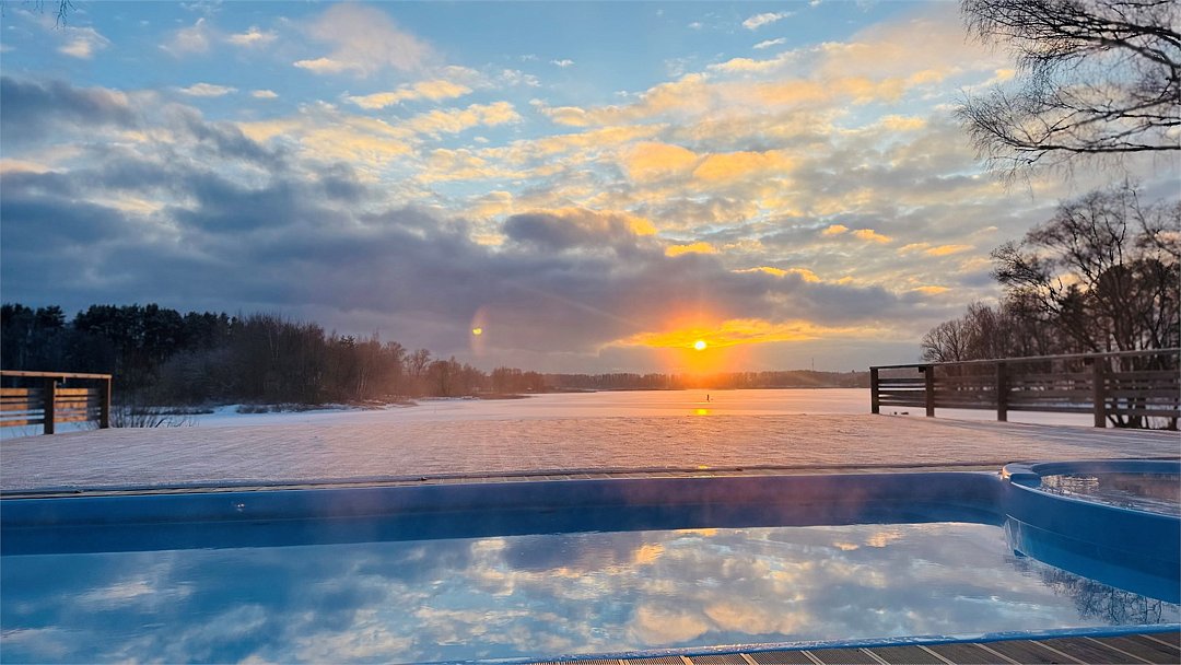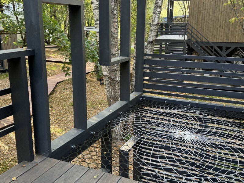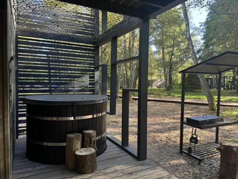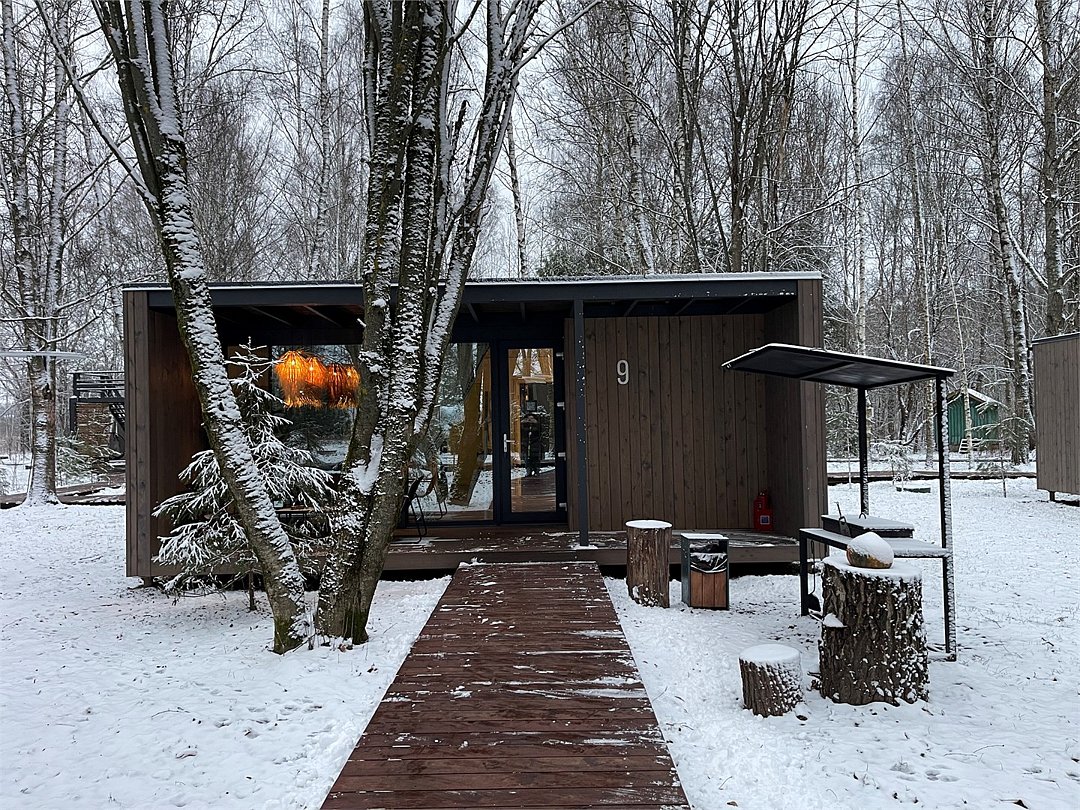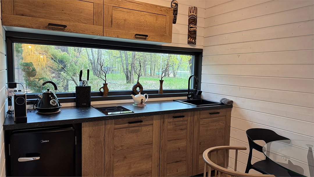 Wi-Fi, кондиционер, фен, микроволновая печь, душевая кабина, косметические средства, терраса, кровать «Queen size», кухня, набор посуды, чайник, кухонная посуда, мангал, панорамные окна, мини-холодильник, вид на озеро, теплые полы, вид на лес, общественный бассейн, система умный дом, умная колонка, набор для приготовления чая и кофе, веранда, можно с питомцамиВ коттедже