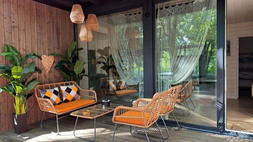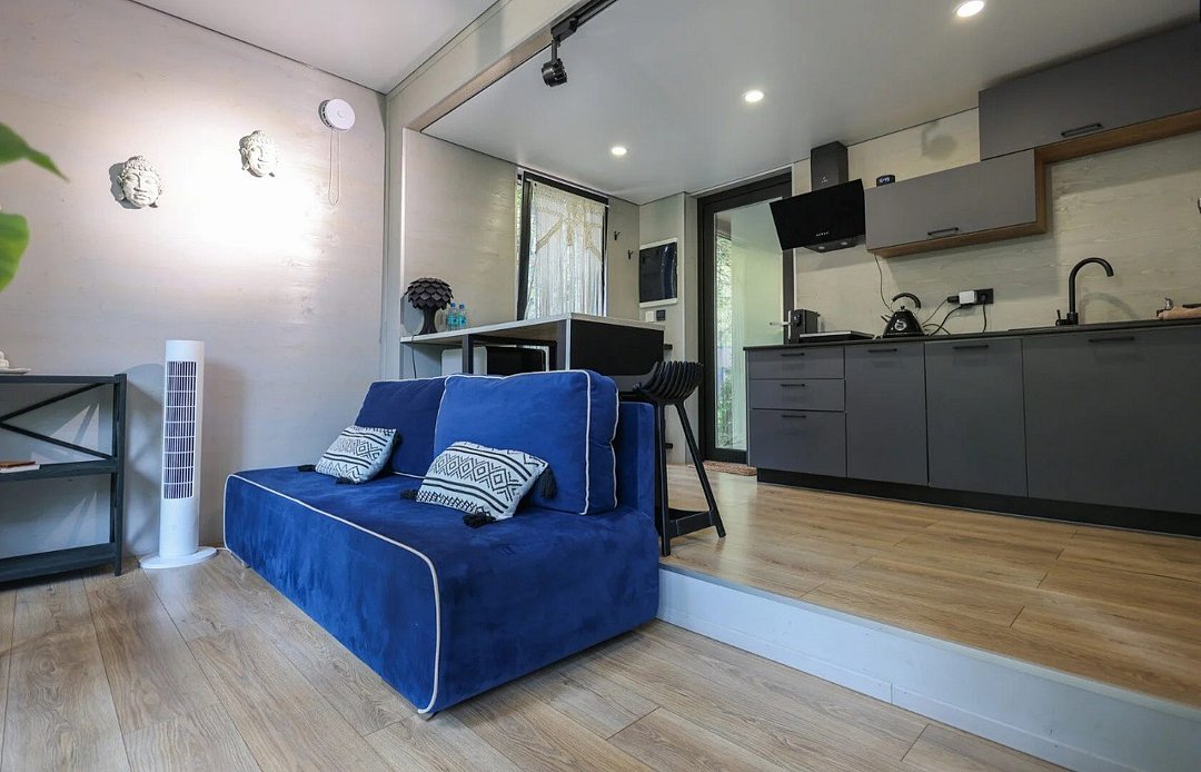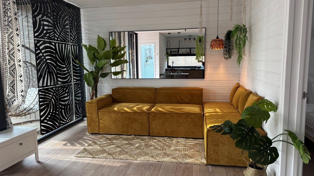 Большая вилла для компании с двумя спальнями до 5 гостей - Просторная гостиная с удобным угловым диваном - Мангальная зона - Кухня со всей необходимой посудой и техникой - Терраса с качелями для посиделок Спальня 1 - Двуспальная кровать Спальня 2 - Две односпальные кровати, которые можно сдвинуть в однуУслуги и удобства