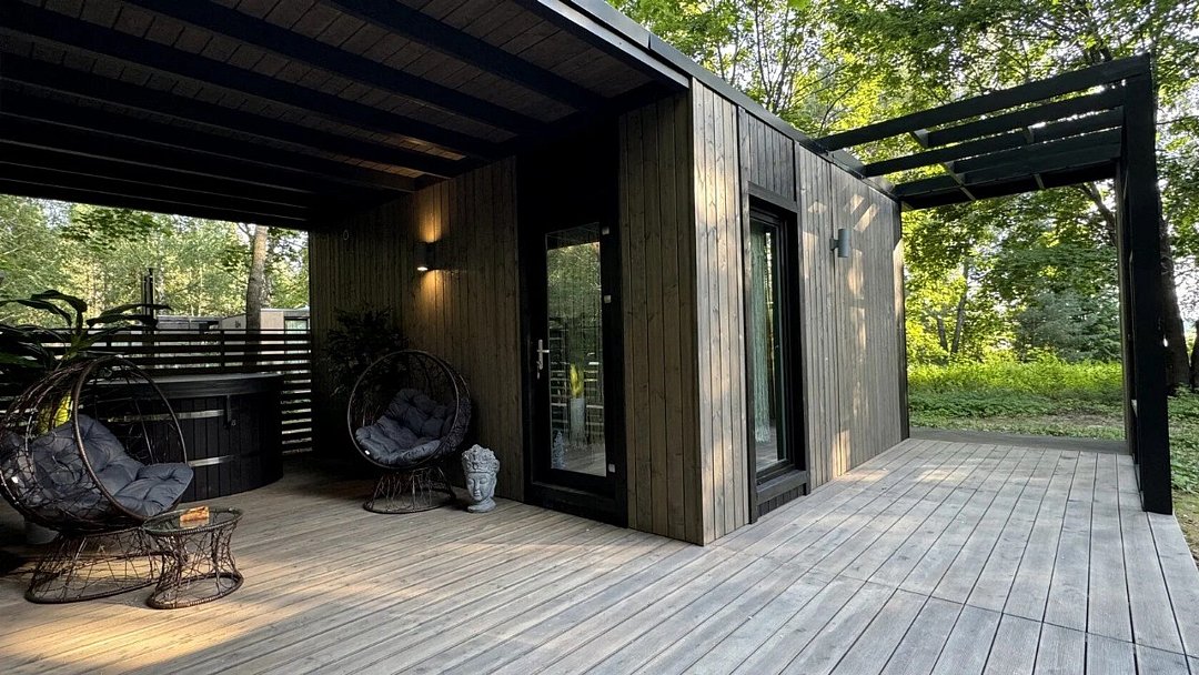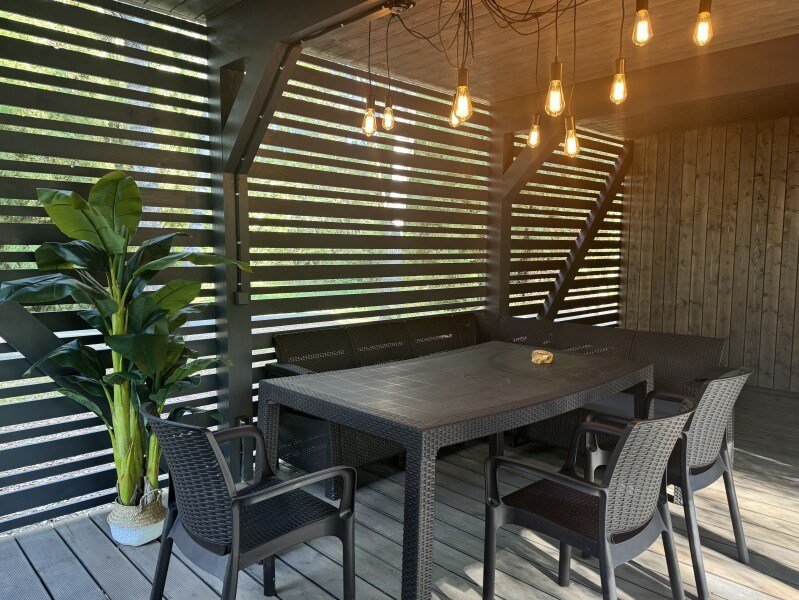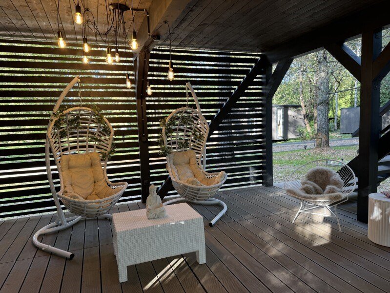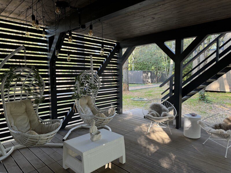 Ультра-современная вилла с большой террасой и видом на лес и водохранилище до 4 гостей - Двуспальная кровать -Раскладной диван - Интернет до 100 Мбит/сек - Кухня со всей необходимой посудой и техникой - Подвесные качели на террасе - Мангальная зонаУслуги и удобства