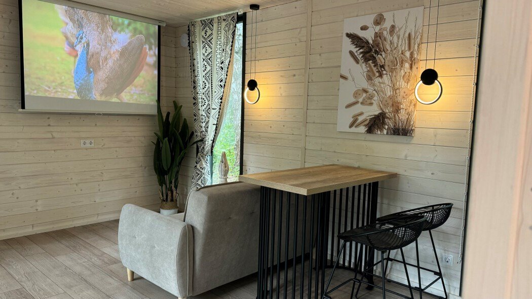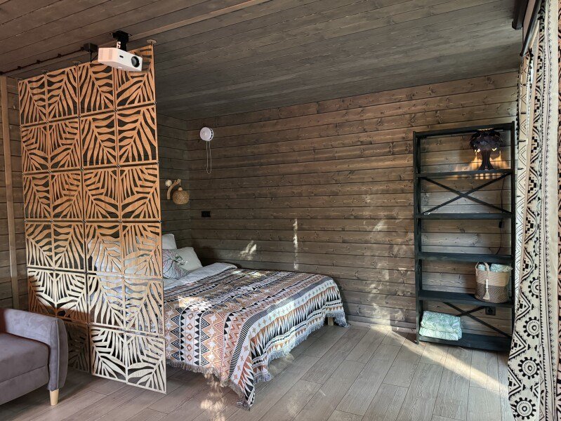 Просторная вилла для компании для компании до 4-х человек - Просторная гостиная с удобным диваном -Проектор с фильмами на любой вкус и жанр -Светлая спальня с двуспальной кроватью и зеркалом во весь рост - Кухня со всей необходимой посудой и техникой - Терраса с уютным уголком для посиделокУслуги и удобства