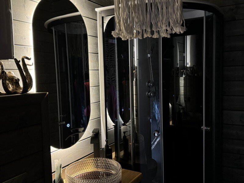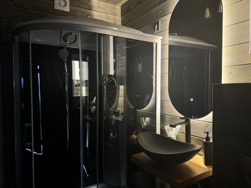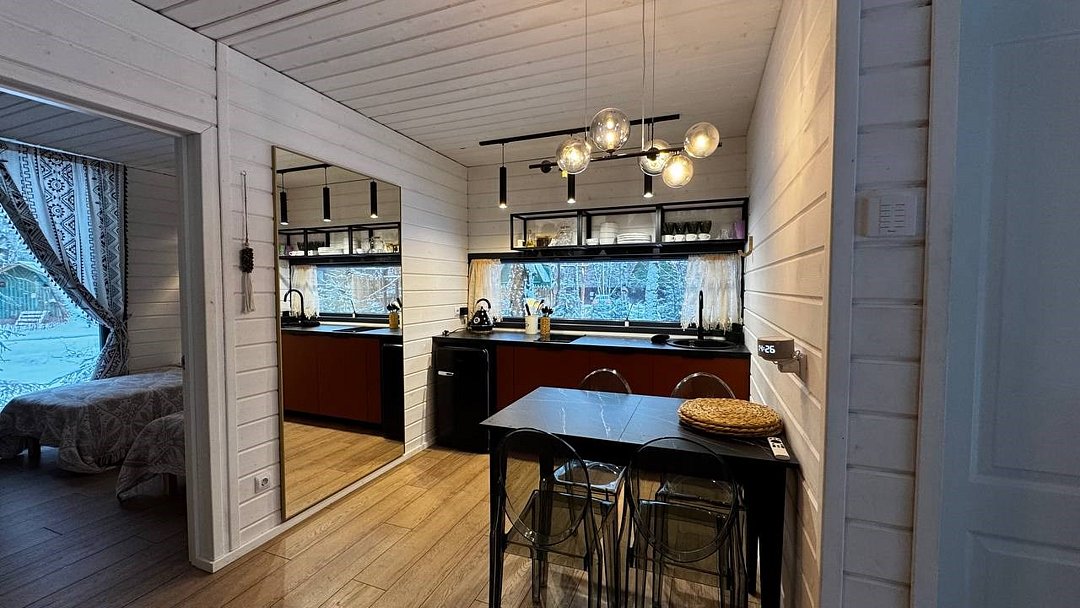 Wi-Fi, холодильник, светильник, фен, микроволновая печь, душевая кабина, теплый пол, терраса, двуспальная кровать, две односпальные кровати, стулья, кухня, набор посуды, чайник, унитаз, раковина, обеденная зона, три комнаты, ламинат, кухонная посуда, кухонная утварь, столовые приборы, стол, туалет, мангал, панорамные окна, теплые полы, проектор, умная колонка, мыло, открытый шкаф, можно с питомцамиВ гостиничном номере