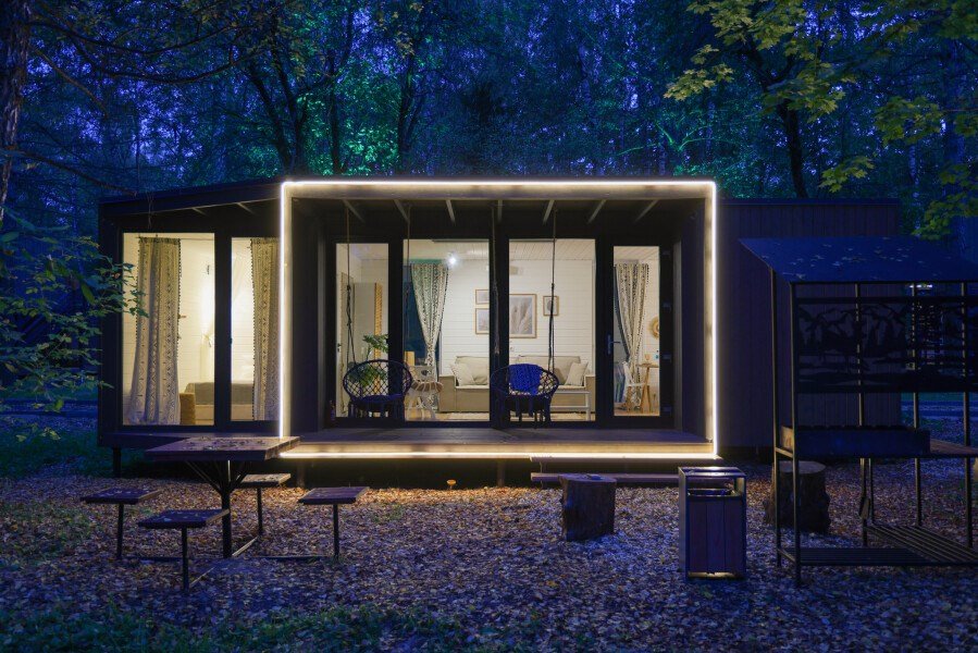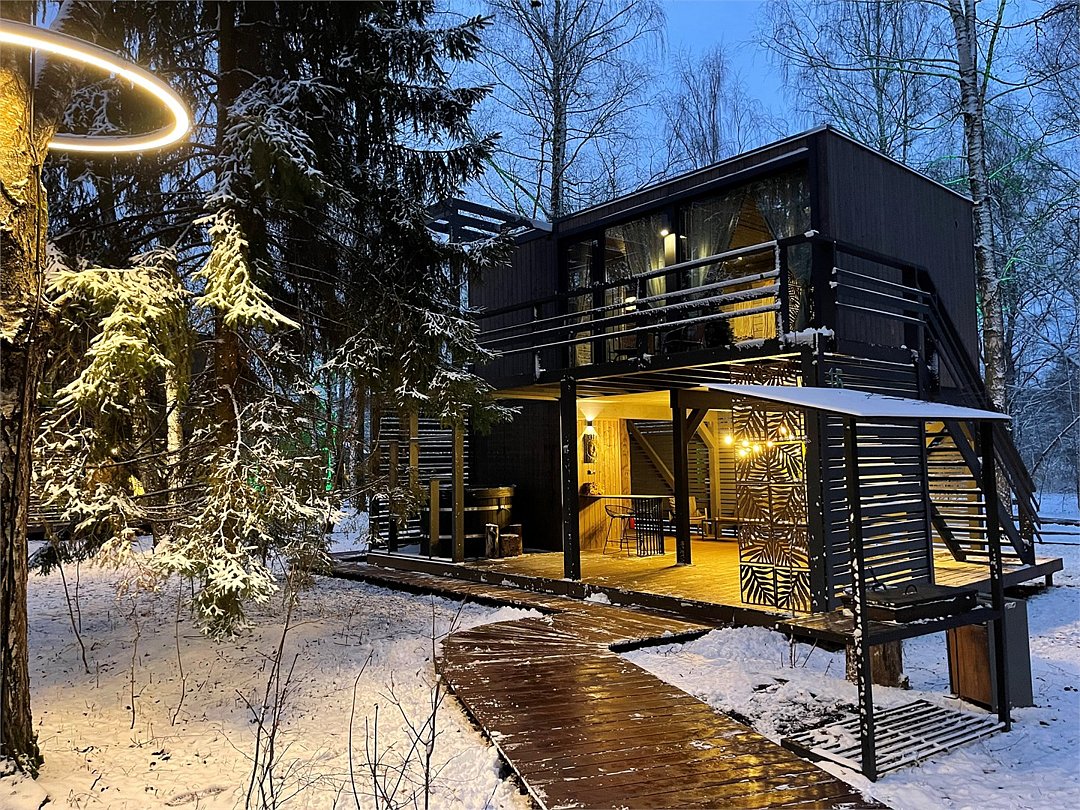 Ультра-современная вилла с большой террасой и видом на лес и водохранилище до 4 гостей -Подвесные качели на террасе - Двуспальная кровать -Колонка Алиса - Интернет до 100 Мбит/сек - Кухня со всей необходимой посудой и техникой - Мангальная зонаУслуги и удобства