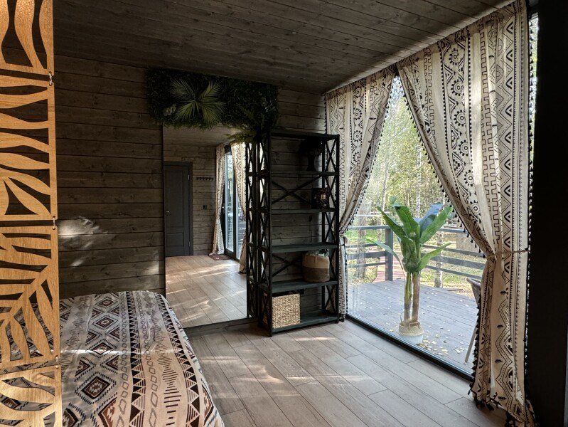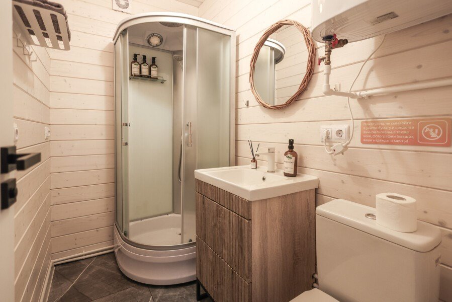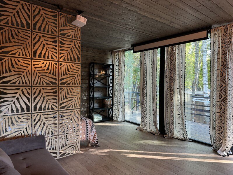 Wi-Fi, холодильник, фен, плита для приготовления пищи, душевая кабина, теплый пол, гигиенические средства, терраса, двуспальная кровать, стулья, шкаф для одежды, вешалки, зеркало, набор посуды, чайник, унитаз, раковина, обеденная зона, отопление, вид на реку, кухонная посуда, кухонная утварь, столовые приборы, стул, стол, туалетные средства, туалет, мангал, панорамные окна, диван-кровать, раскладной диван, теплые полы, вид на лес, проектор, умная колонка, межкомнатная дверь, мыло, можно с питомцамиВ гостиничном номере