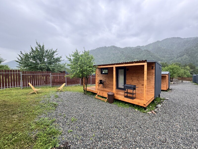 Снимите домик для отдыха в горах Алтая рядом с песчаным пляжем на берегу горной реки