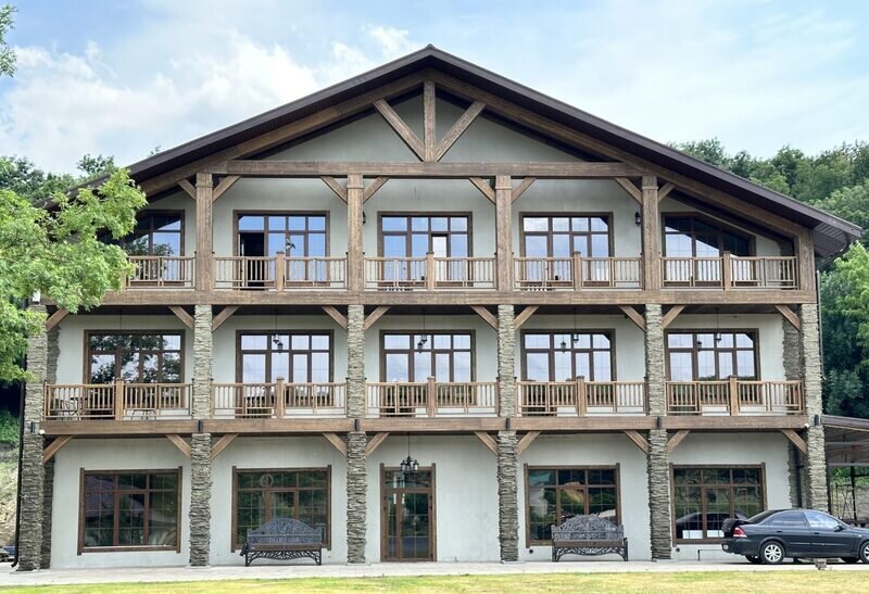 Четырёхместный коттедж с видом на реку двуспальная кровать