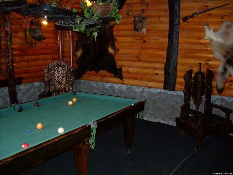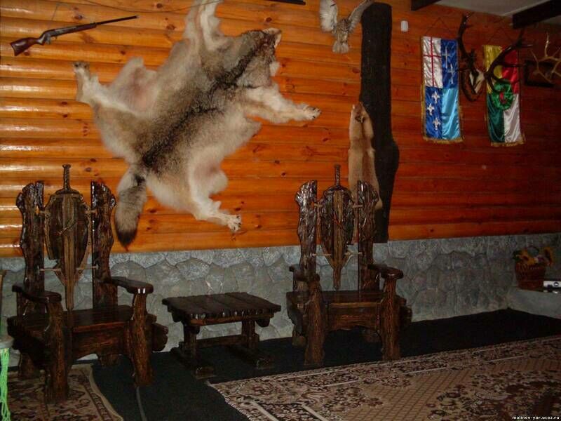 Помимо свежего воздуха, великолепной природы и водоема для рыбалки гостям предлагаются комфортабельные домики с разделенными дворами, банкетными залами и бильярдными. Все комнаты выполнены в замковом стиле: резная мебель, множество охотничьих трофеев и т.д. В стоимость аренды домиков входит настоящая баня для снятия мышечной усталости.