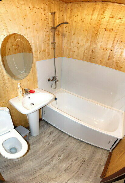 Отдельностоящий коттедж на два двухместных номера. У каждого номера свой отдельных вход с разных сторон домика.