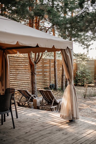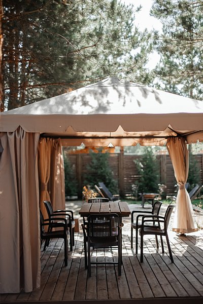 Главное правило — уважение к себе, к природе и к остальным. Если вы любите музыку, вы можете воспользоваться колонкой Sber boom, которую найдёте в домике.