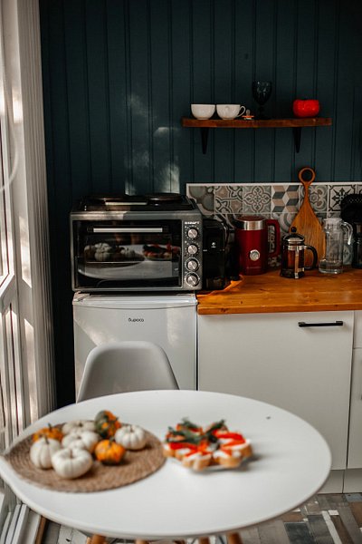 Этот небольшой, но комфортный домик идеально подходит для небольшой семьи из родителей и ребёнка. В просторной жилой комнате вас ждут две полноценных спальных места (кровать и раскладной диван), оборудованная кухня и уютная гостиная. Домик также оснащен отдельным санузлом со всеми удобствами.