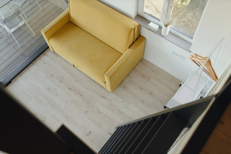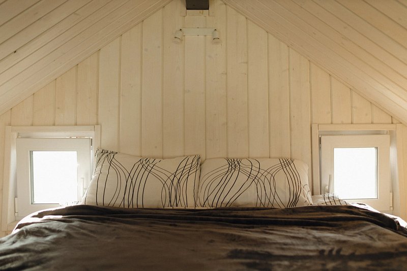 Номер рассчитан на семью или компанию до 4 человек : двуспальное место на антресоли и двуспальное место на первом этаже.
