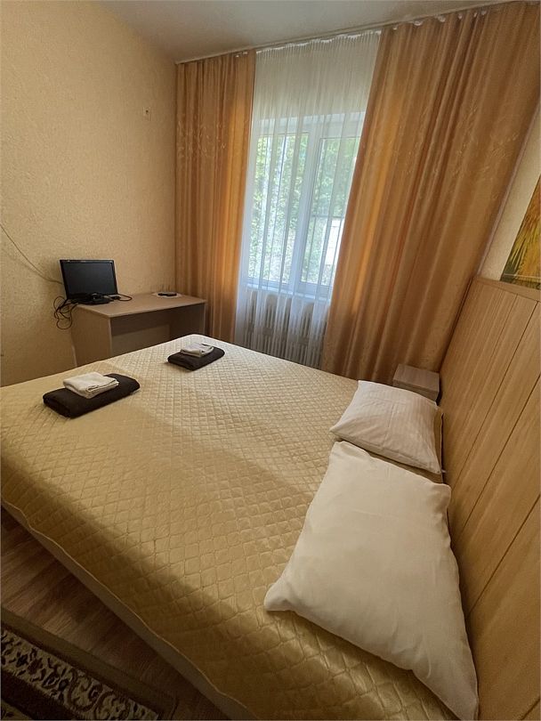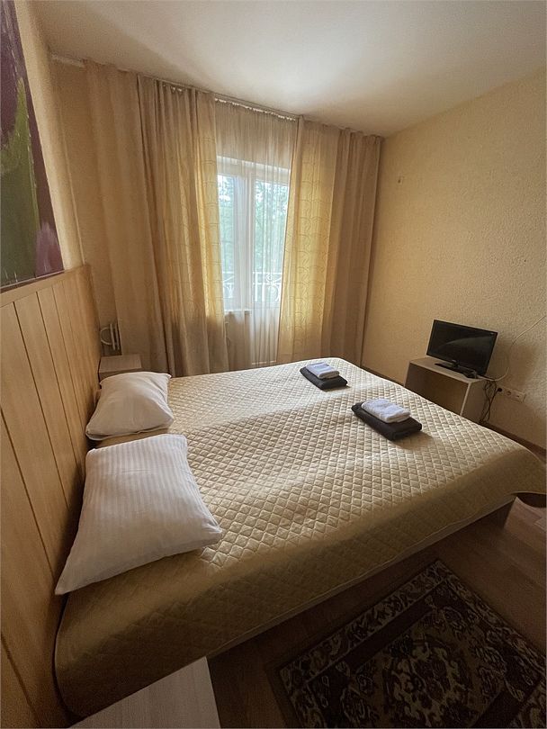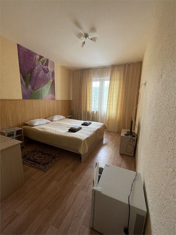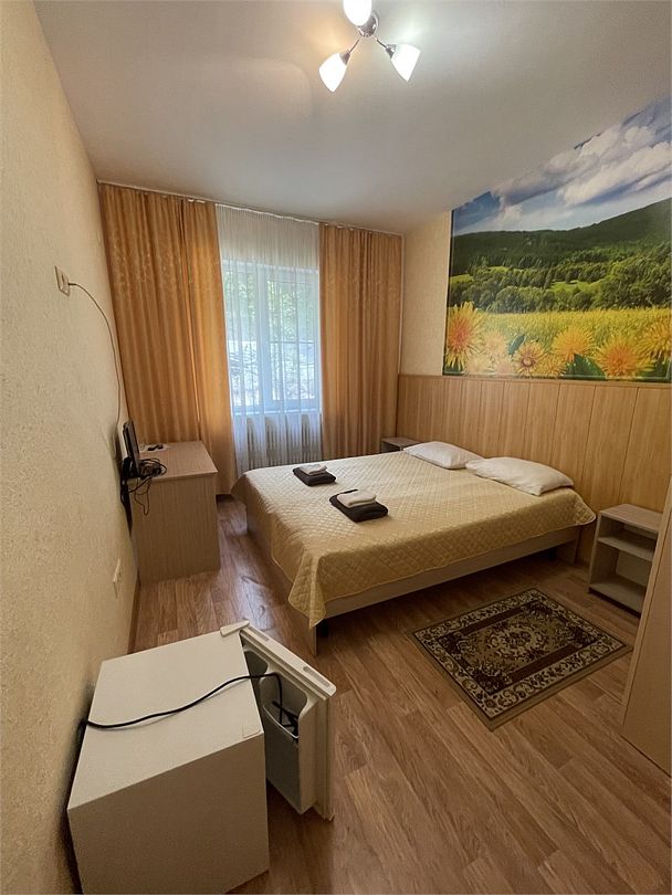 Однокомнатный номер со всеми удобствами и с двуспальной кроватью. Есть балкон.