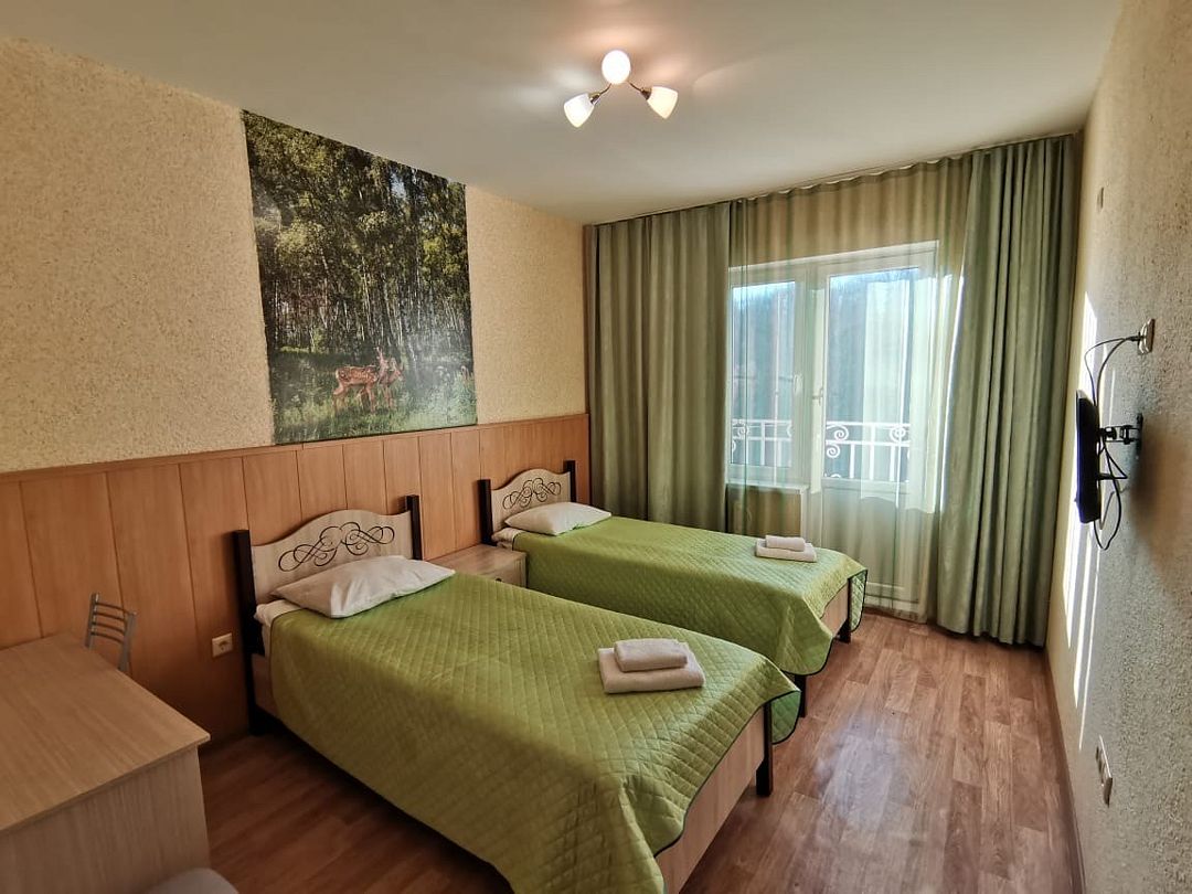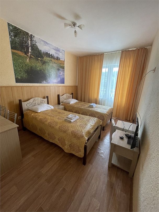 Однокомнатный номер со всеми удобствами и с двумя раздельными кроватями. Есть балкон.