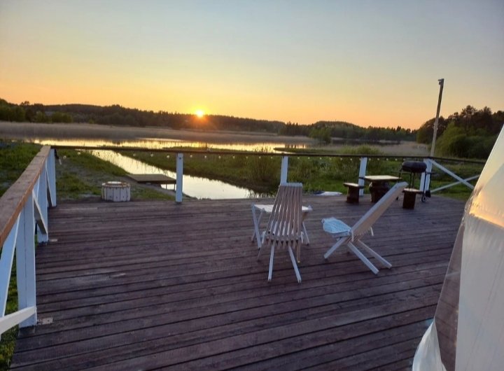 На самом берегу Ладожского озера расположен уютный глэмпинг «Млечный Путь».