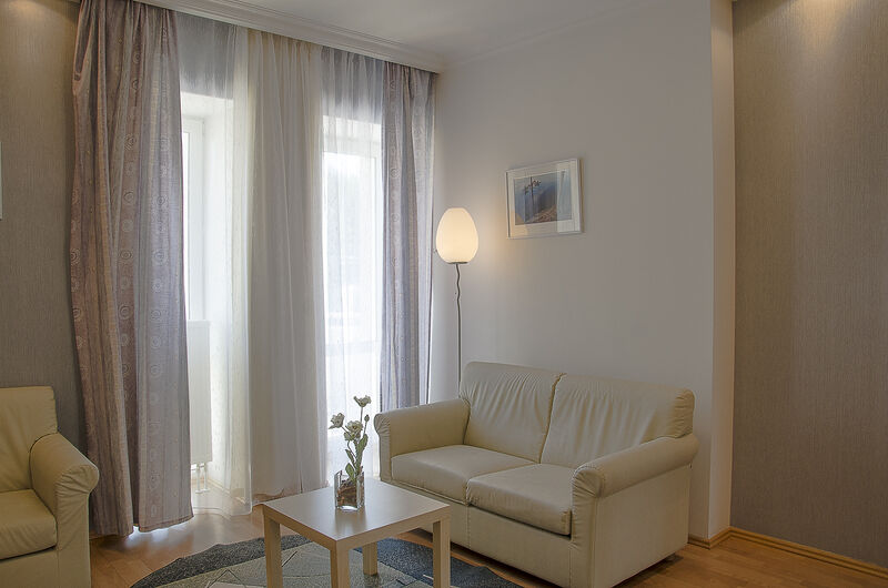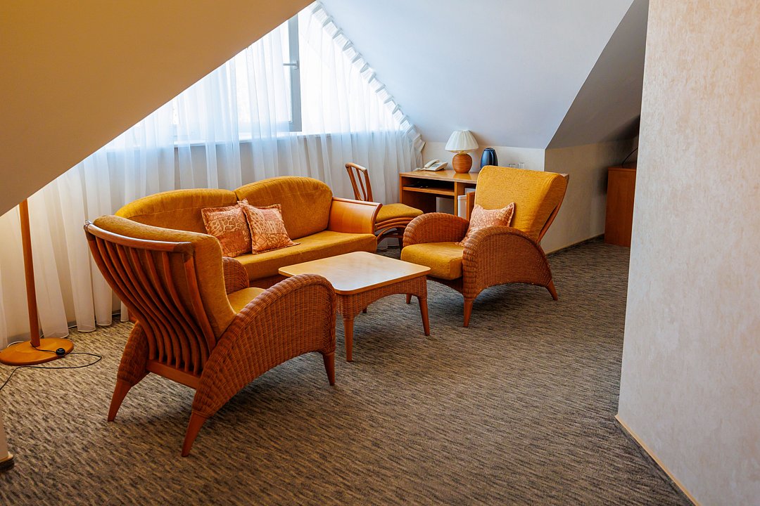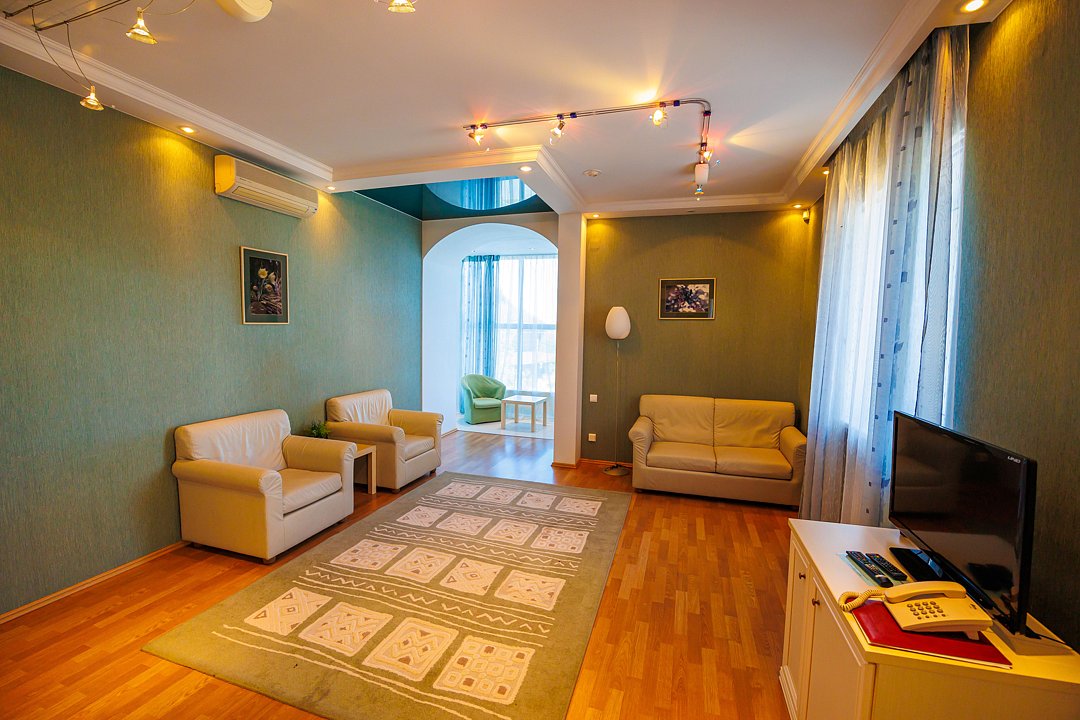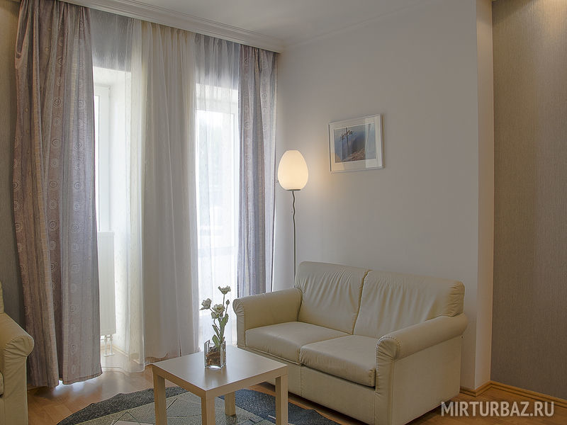 Двухзонированный номер площадью 38 кв.м., с кондиционером, телефоном, телевизором и минибаром.