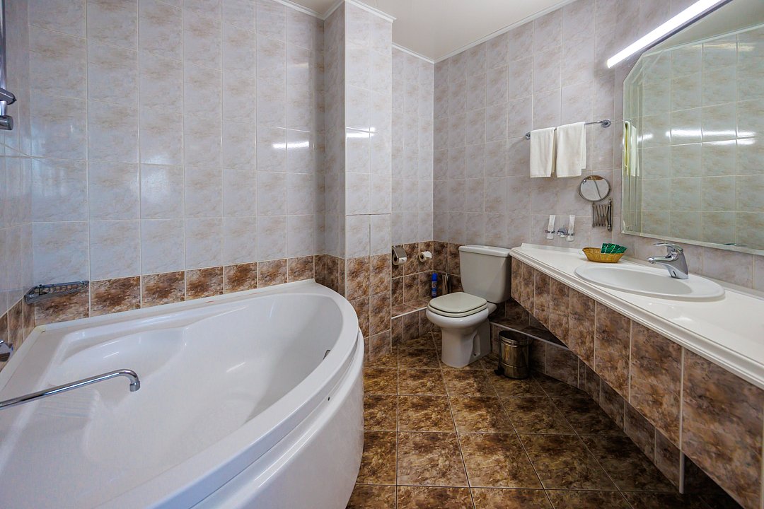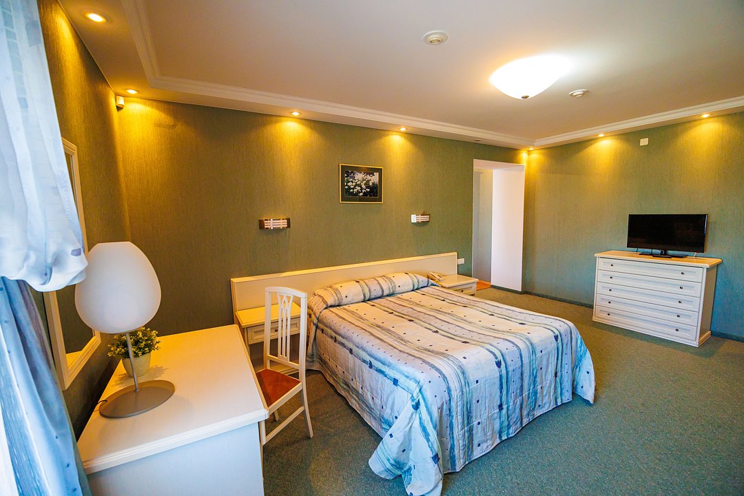 Номер площадью 27 кв. м. c кондиционером, телефоном, минибаром, с большой кроватью, которая может трансформироваться в две раздельные (с прикроватными тумбочками), журнальным столиком с креслами, шкафом-купе.