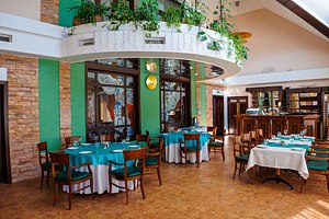 В отеле есть прекрасный ресторан, который вмещает в себя до 60 человек. В ресторане Вы сможете насладиться изысканными блюдами русской и уральской кухни в уютной атмосфере зала с дизайнерскими решениями.