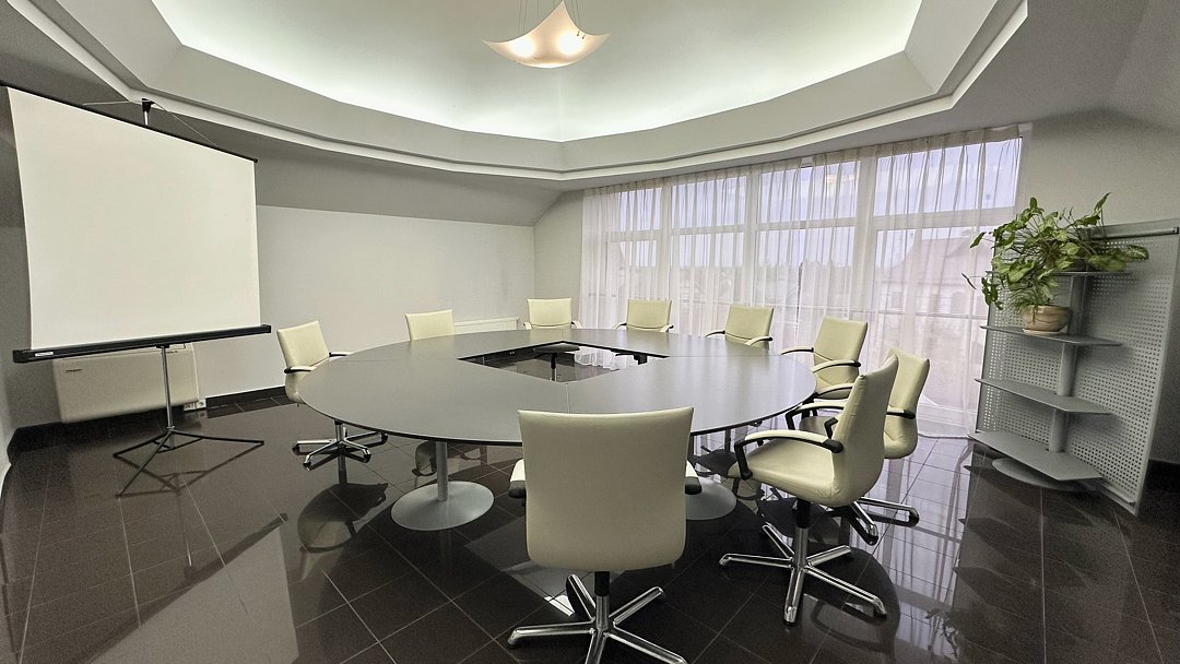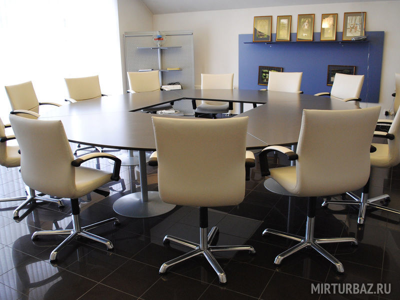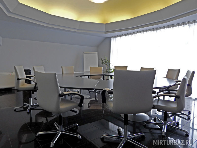 Малый конференц-зал вмещает до 15 человек, большой конференц-зал вмещает до 50 человек.