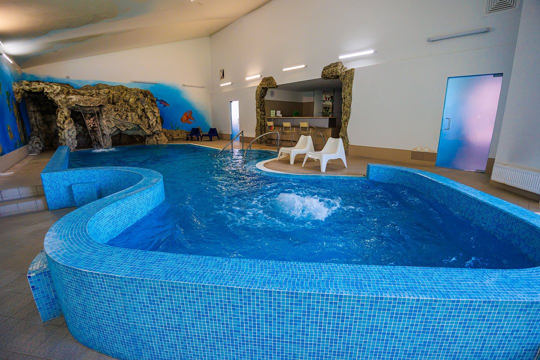 Крытый бассейн с водопадом и гейзером