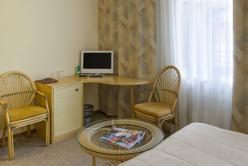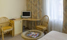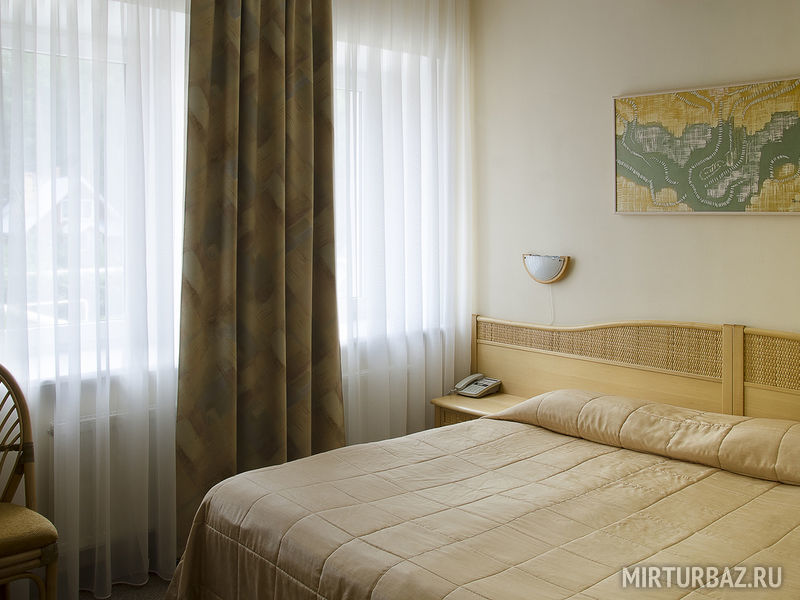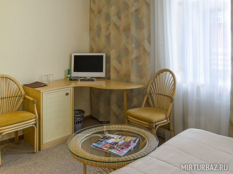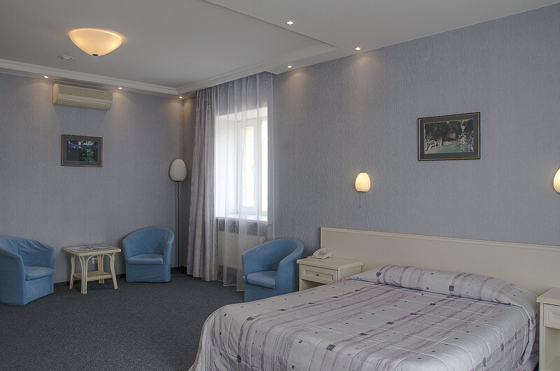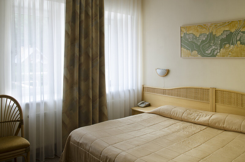 Стандартный номер, площадью 16 кв.м., с кондиционером, телефоном, телевизором, минибаром, с большой кроватью, которая может трансформироваться в две раздельные (с прикроватными тумбочками), шкаф-купе, письменный стол.