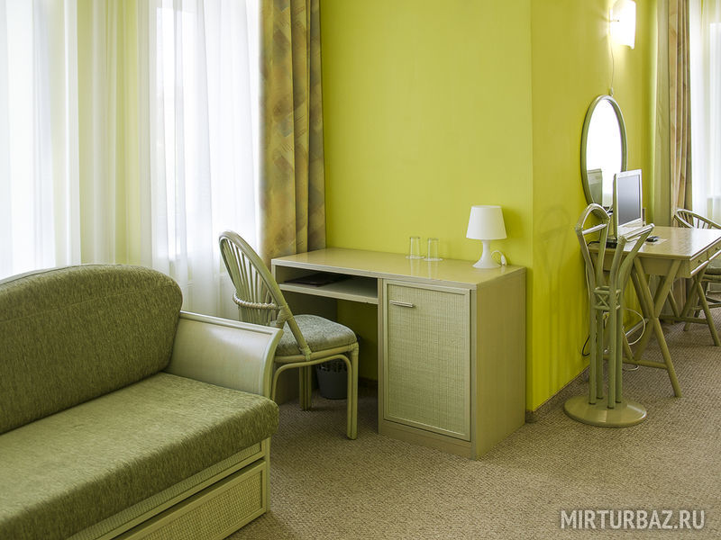 Дополнительно в номере, в гостиной зоне, располагается раскладной диван и письменный стол.