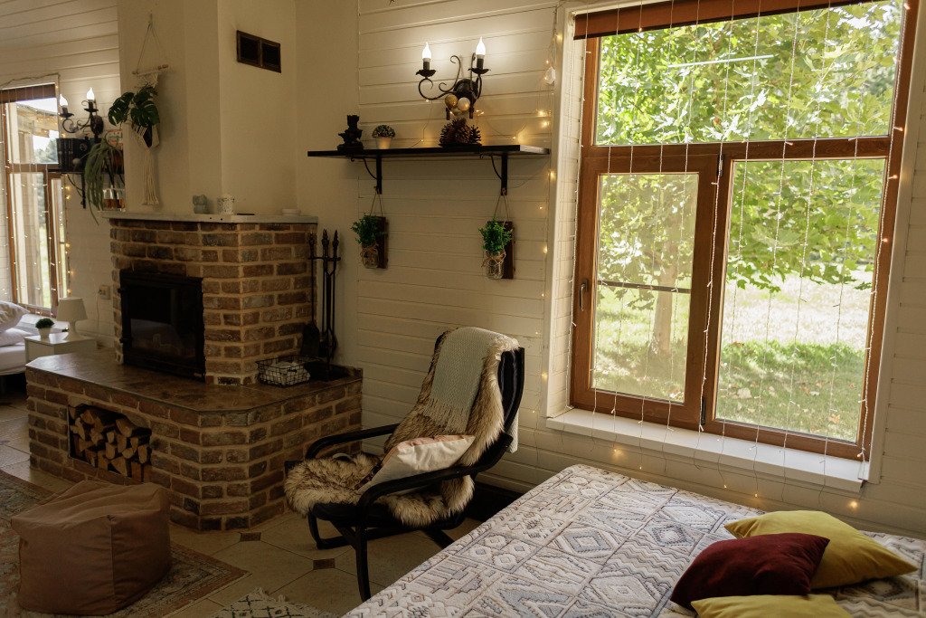 — Большую уютную гостиную с кухней, большим телевизором и камином