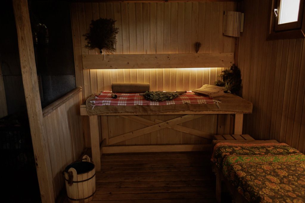 Русская баня на дровах и банное меню (массаж, индивидуальное парение, групповые парения, скрабы, веники и пр.).