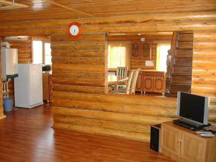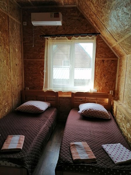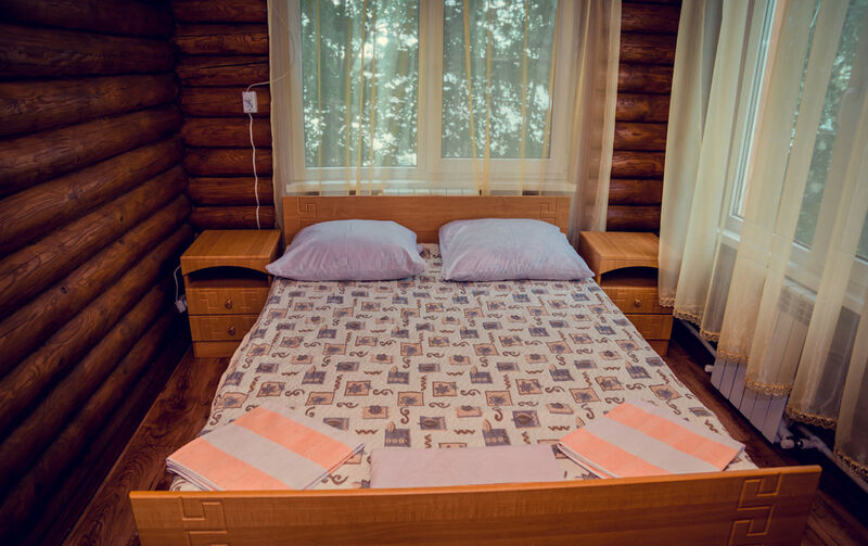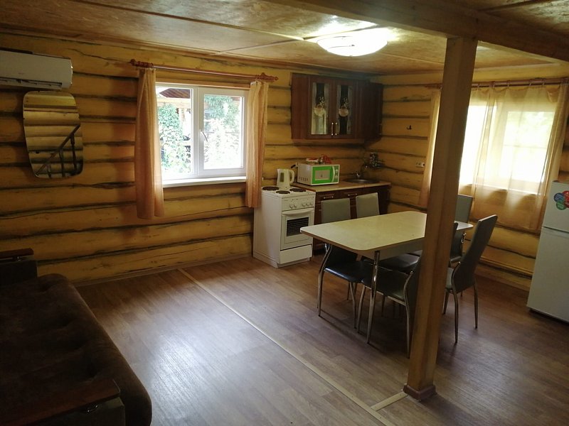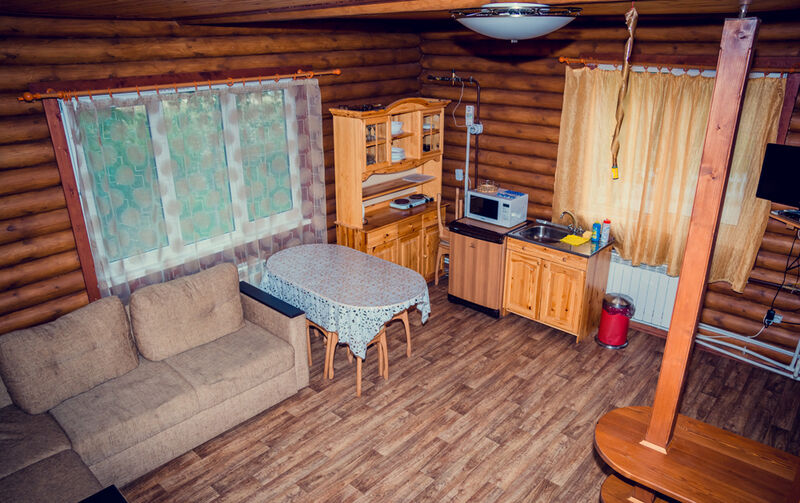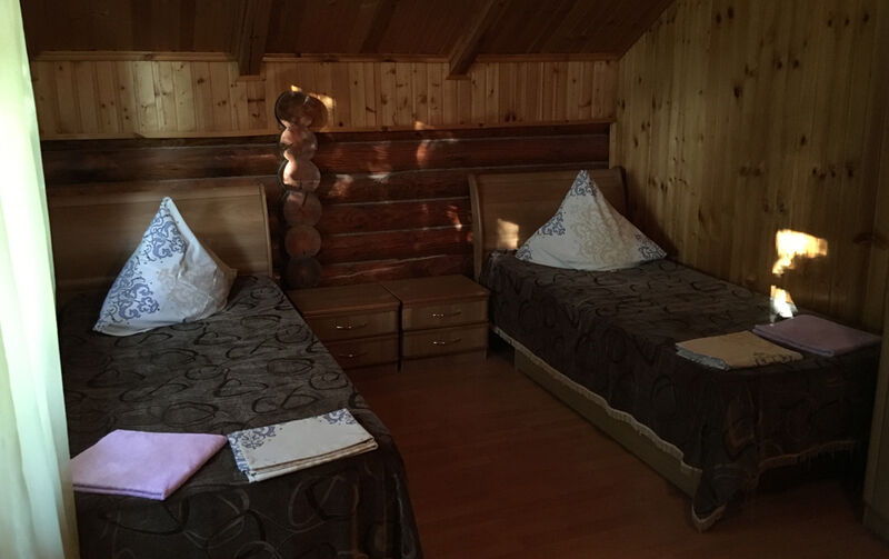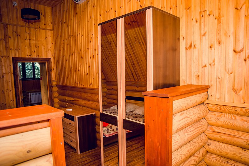 2 Дома из бревна в русских традициях оснащены сауной и могут принять от 6 до 8 отдыхающих для комфортного отдыха и зимой, и летом. Первый этаж - сауна с комнатой отдыха, холл и кухня. На втором этаже - три спальных комнаты. С мансарды можно любоваться открывающимся видом на всю турбазу.